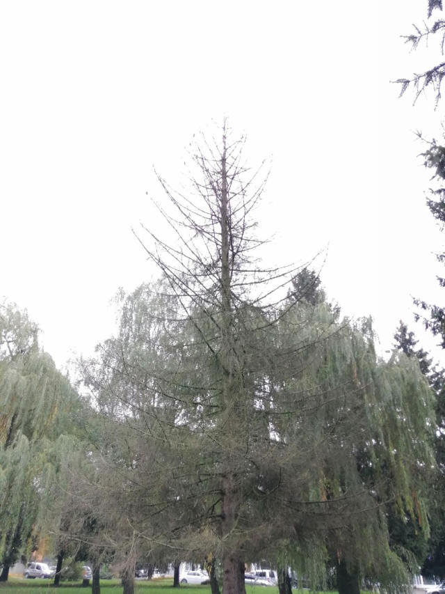 «У зеленій зоні біля ПАТ «ЕНКО» є велика суха ялина, яка може впасти в будь-який момент. Дерево знаходиться близько до тротуару, тому становить небезпеку для пішоходів. Також поруч є декілька вже повалених дерев, які ніхто не прибирає», – зазначила лучанка.
