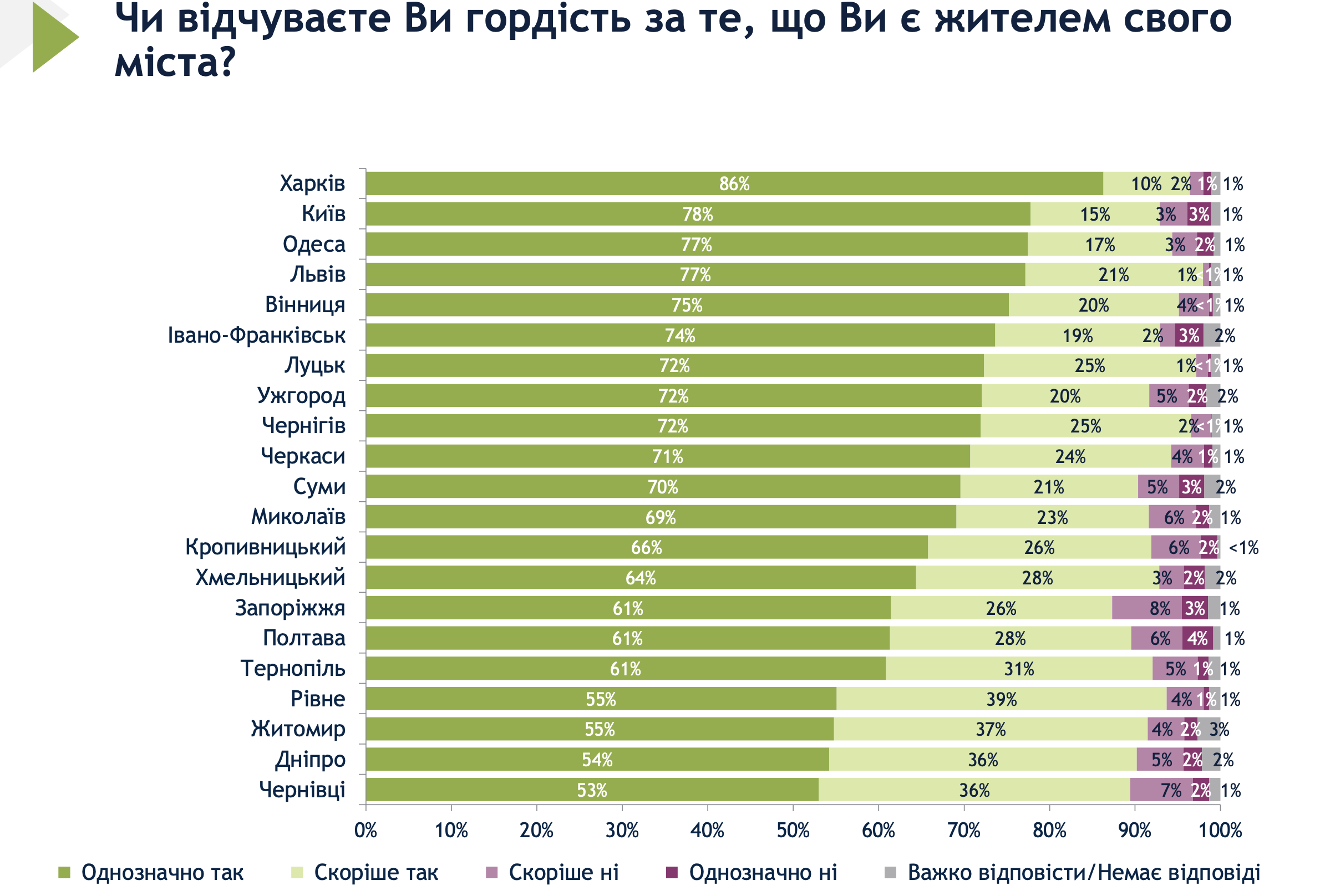 97% лучан відчувають гордість за те, що є жителями свого міста. На запитання «Чи відчуваєте ви гордість за те, що є жителем свого міста?» 72% опитаних відповіли «однозначно так», а 25% – скоріше так.