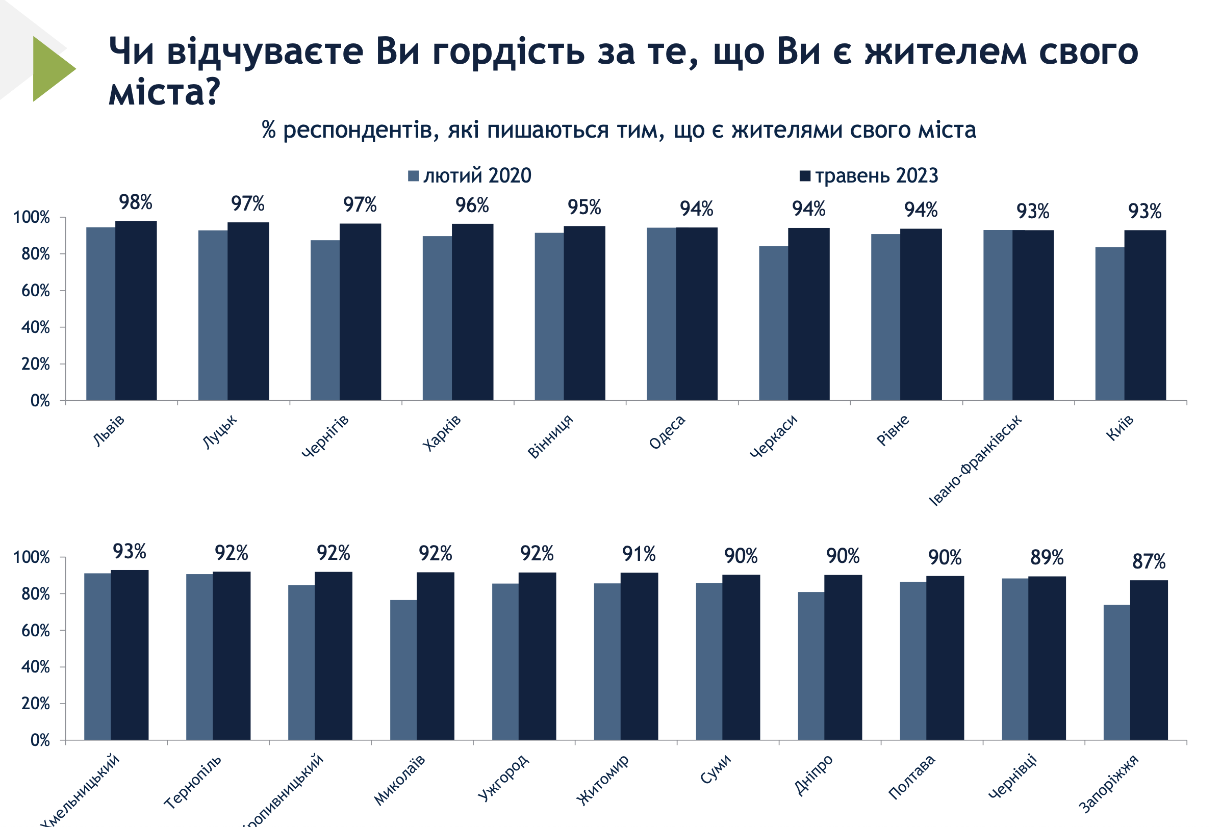 Про це йдеться у восьмому муніципальному опитуванні Міжнародного республіканського інституту (IRI), проведеному у квітні-травні 2023 року. Це опитування дає усесторонній аналіз ставлення громадян до органів місцевого самоврядування та надання комунальних послуг.