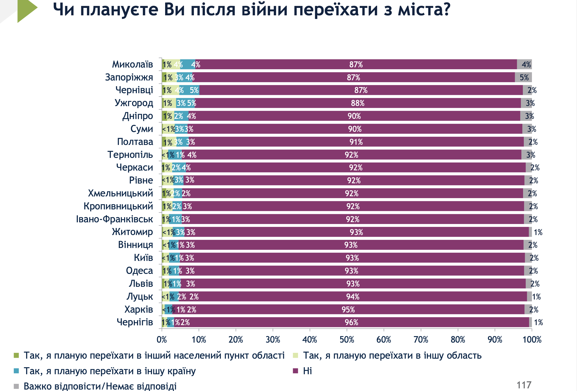 Також респондентів запитали, чи планують вони після закінчення війни виїхати з міста. 94% лучан не збираються змінювати місце свого проживання.56% лучан оцінили, що в їхньому місті достатньо можливостей для досягнення успіху молодими людьми.