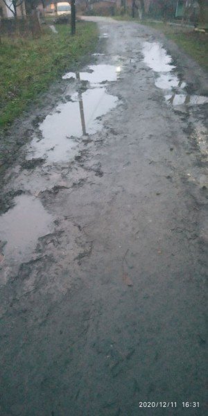 За його словами, на вулиці Дубнівській (неподалік школи №7) на пішохідному переході відсутнє асфальтне покриття, тож на відрізку утворилося болото.