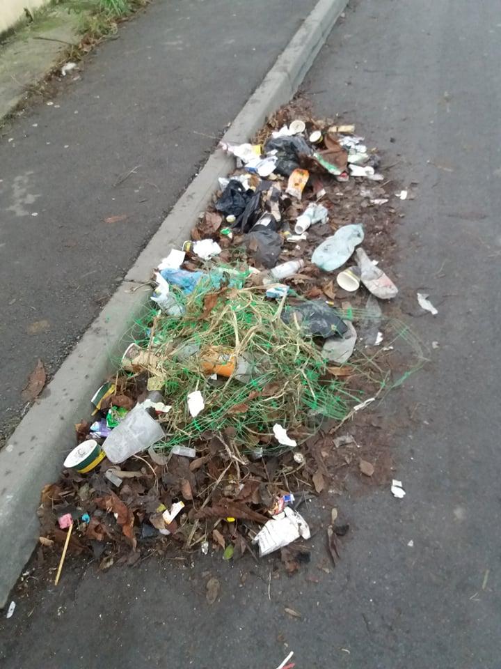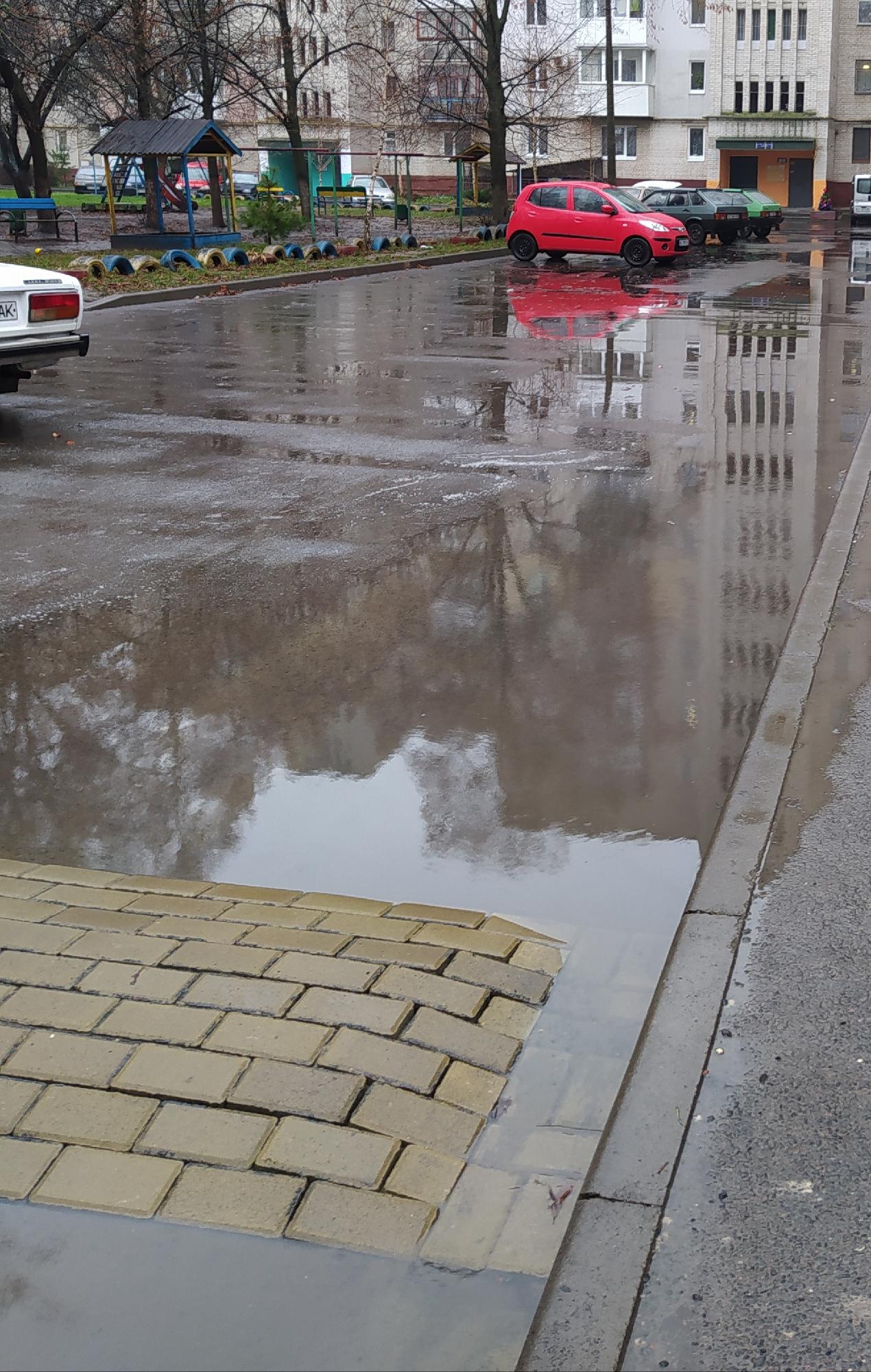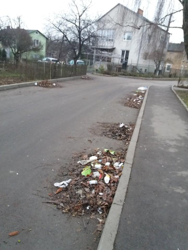 «Після облаштування в дворі примусових засобів зниження швидкості автомобілів дощова вода від будинків №13, 13а, 13б на вулиці Шота Руставелі тепер не може вільно стікати до колодязя зливової каналізації та й колодязь забитий мулом», – зауважив чоловік.На проблему неприбраного сміття на вулиці Супутника звернула увагу Наталія Гнітецька. Йдеться про зметене двірниками три тижні тому опале листя.