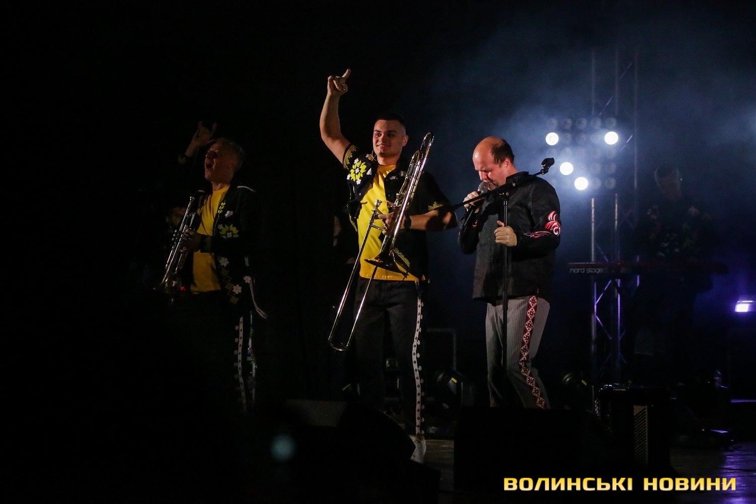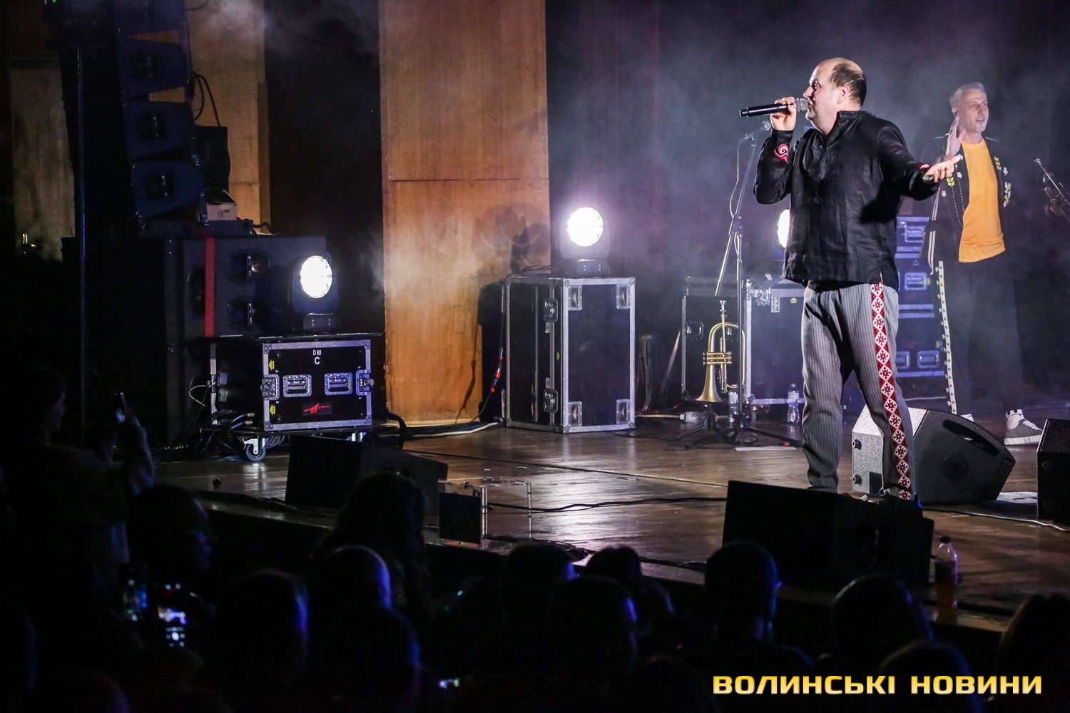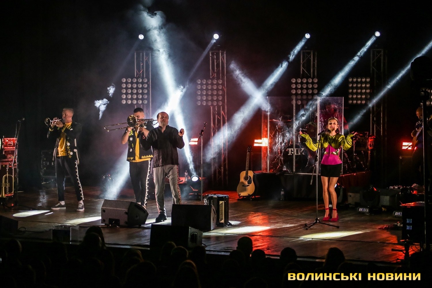 «Кацапи, а чому ми вас маєм питати, як жити на власній землі?!» – одразу ж затягнув фронтмен Віктор Бронюк разом з усією залою. Він звернувся до лучан, сказавши, що радий усіх бачити, а на Волинь ансамбль приїхав у повному складі.У першій частині концерту гурт вдало чергував свої танцювальні та ліричні хітові треки, даруючи лучанам різні емоції. Спочатку ТІК розірвав піснею, без якої не обходиться жодне справжнє українське весілля, – «Біла хмара, чорна хмара». Потім заспокоїли атмосферу в залі, зігравши «Листопад».