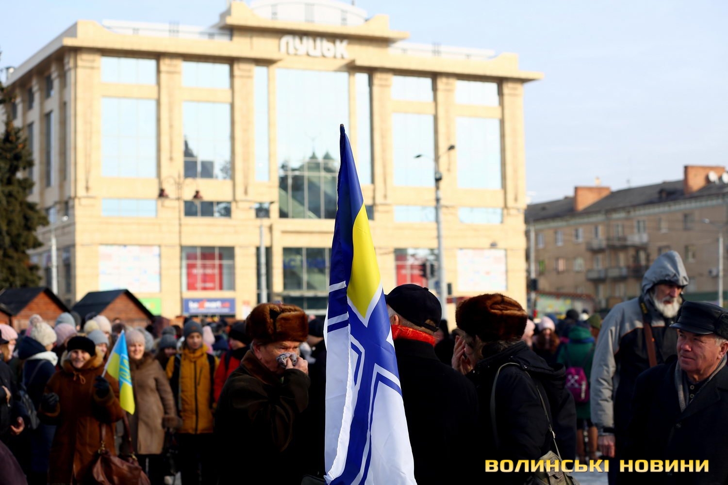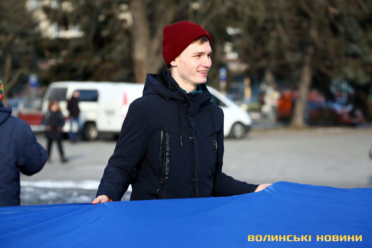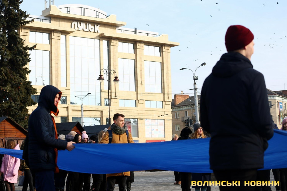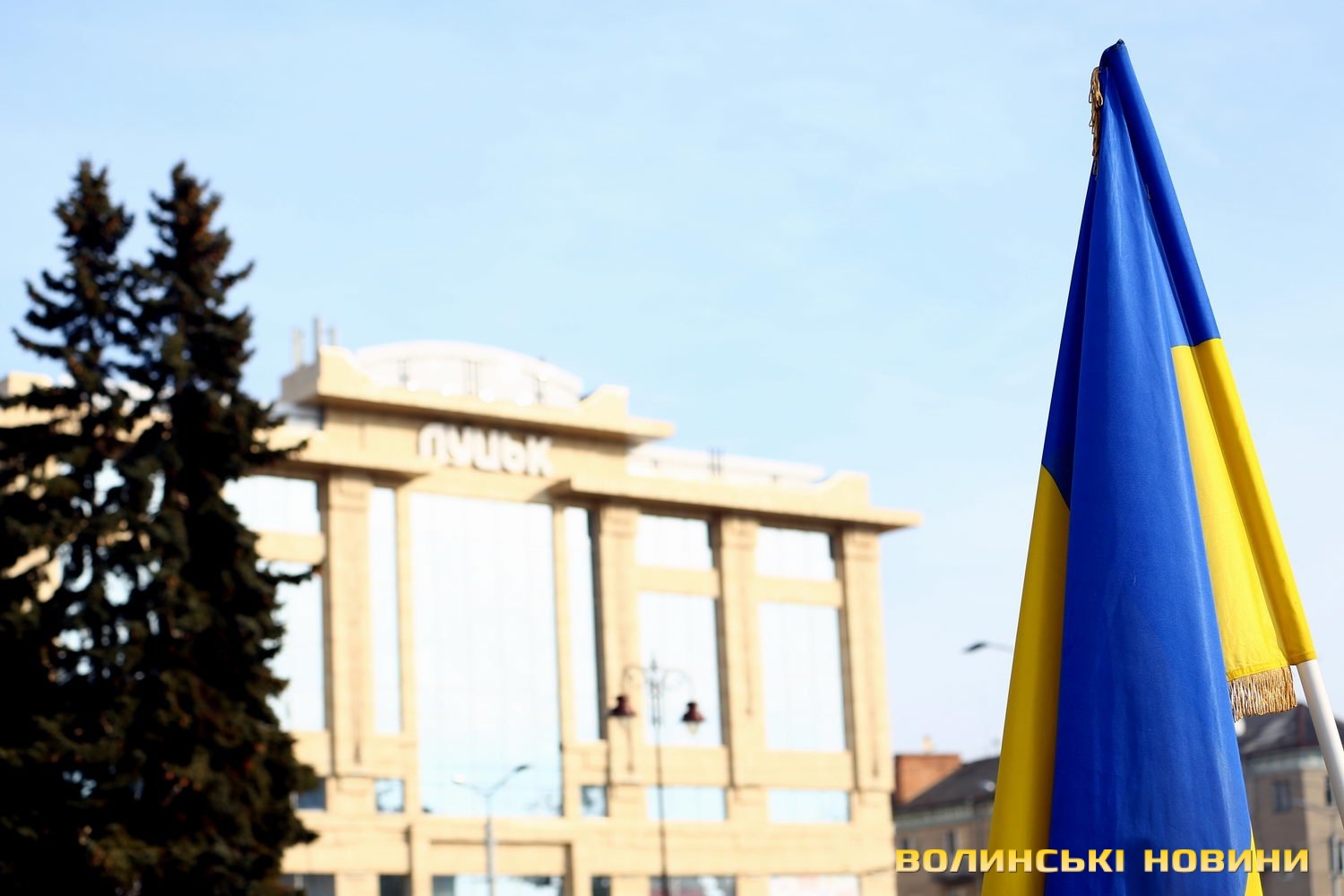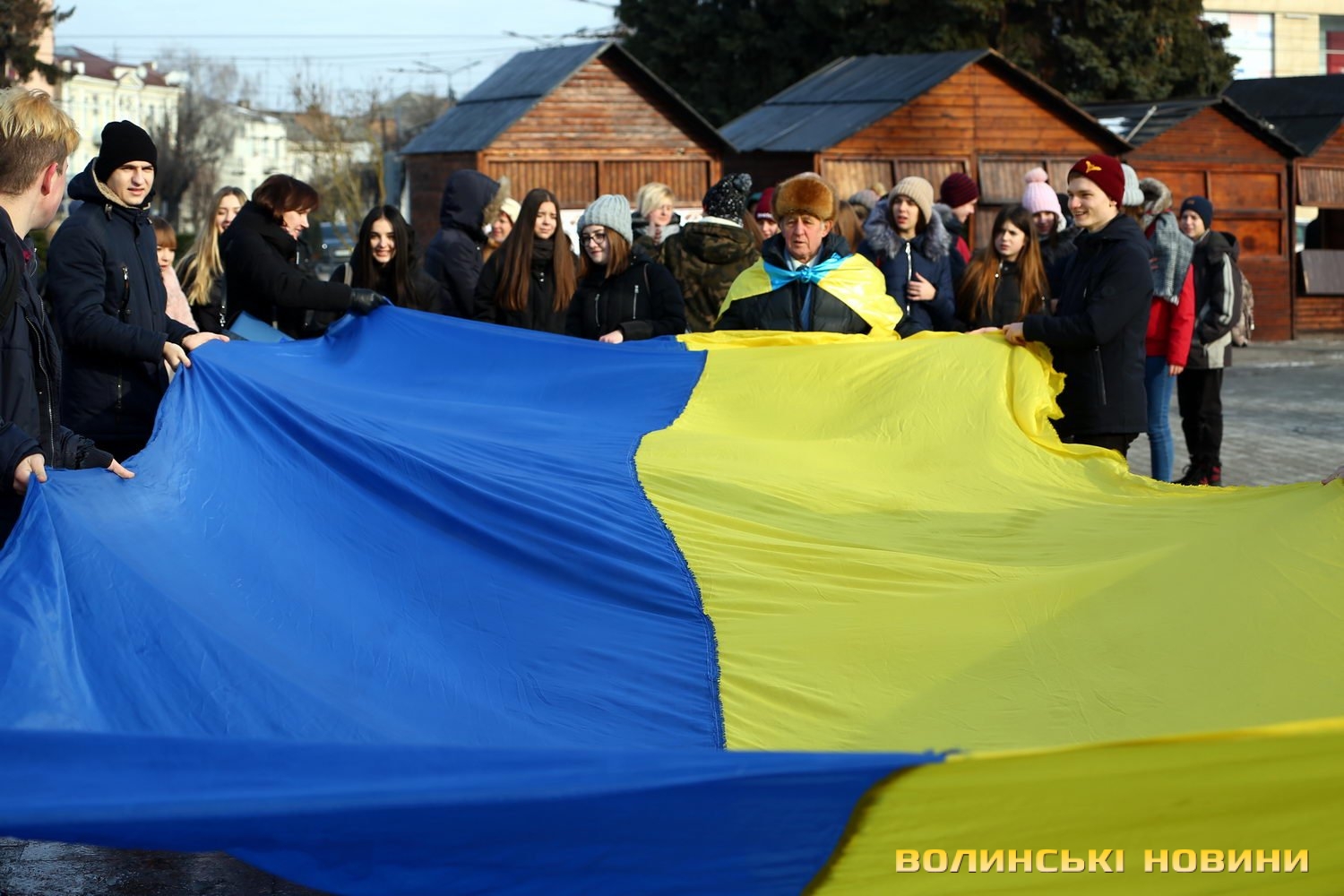 Насамкінець на головній площі обласного центру Волині розгорнули жовто-блакитний стяг, а кожен учасник дійства отримав відзнаку.