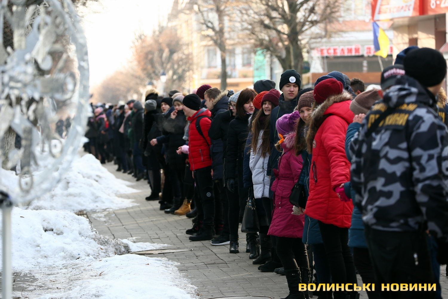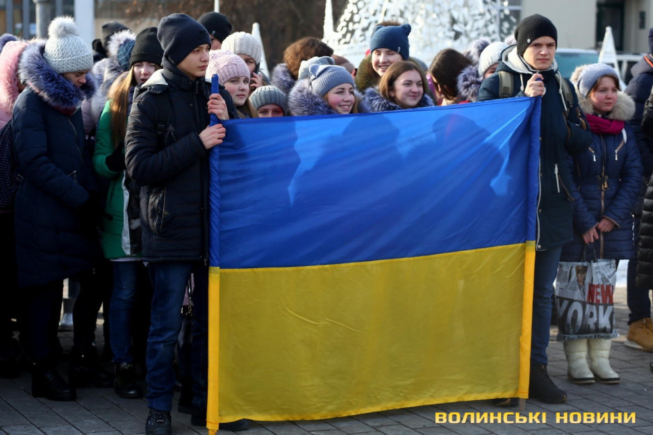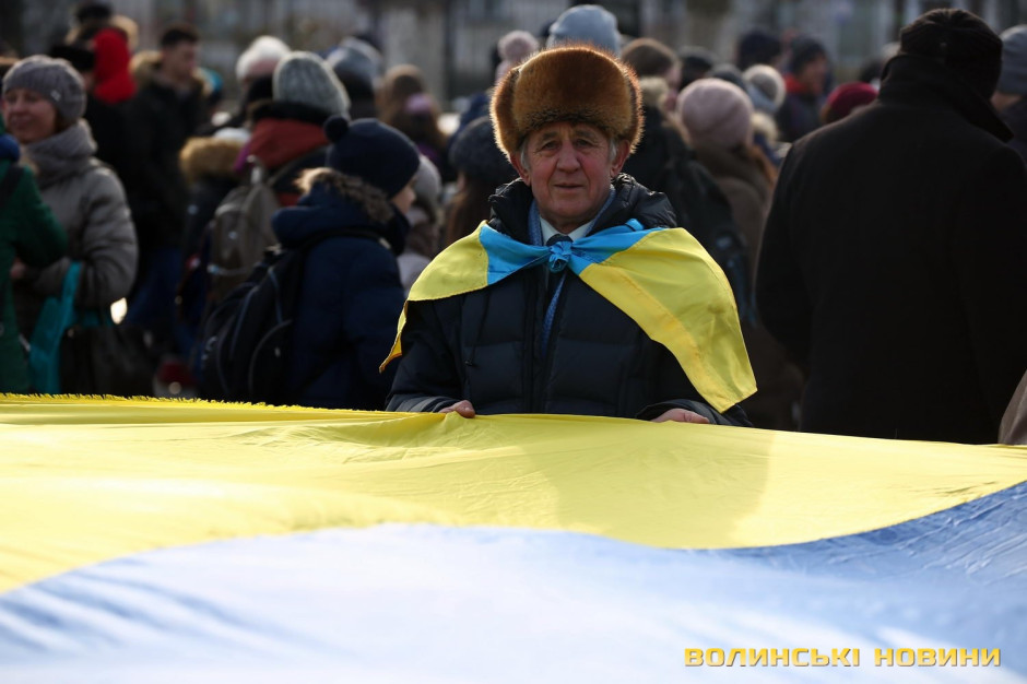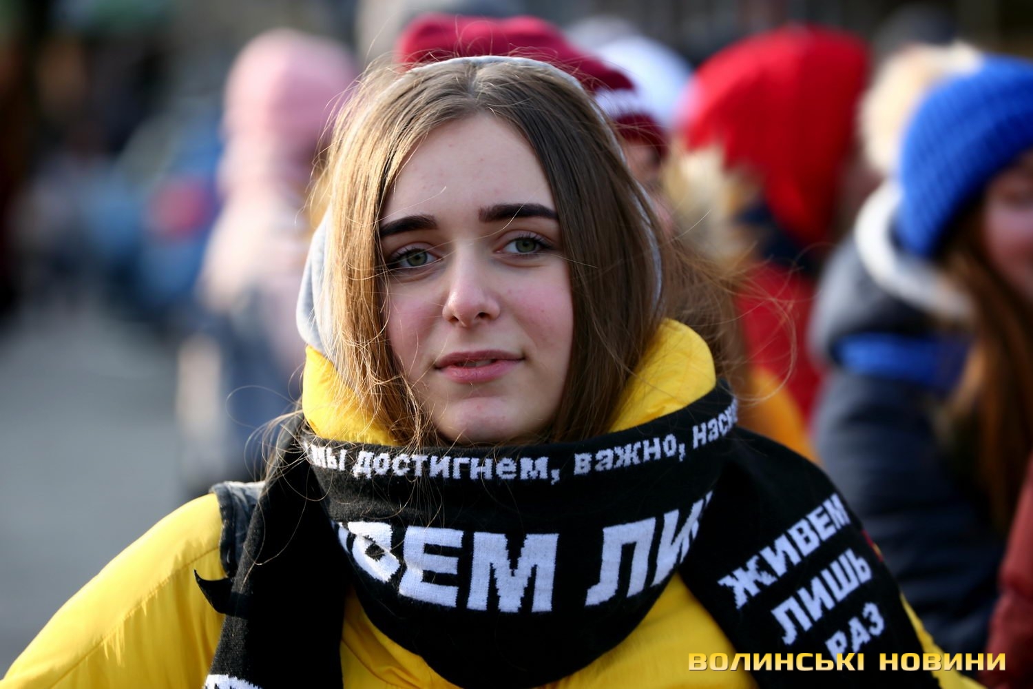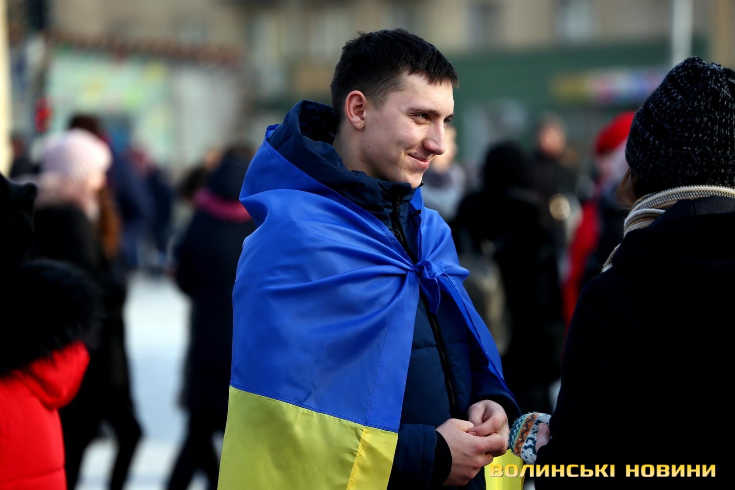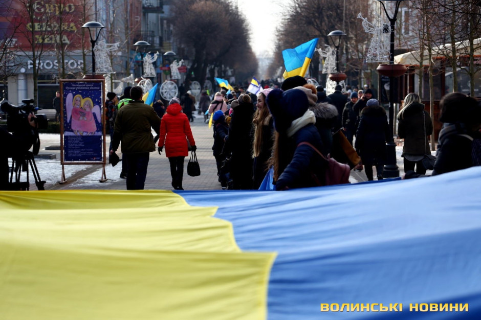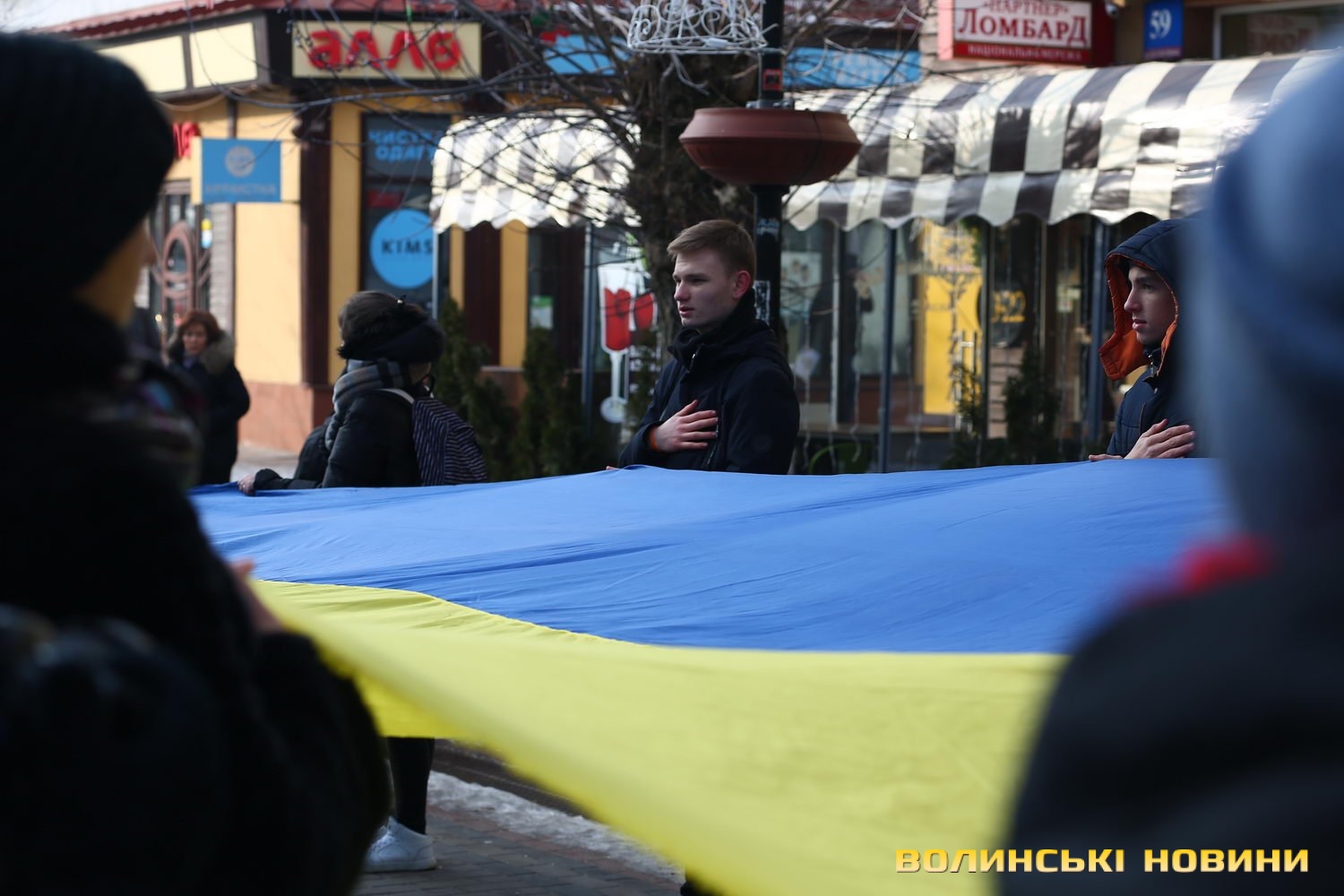 Насамкінець на головній площі обласного центру Волині розгорнули жовто-блакитний стяг, а кожен учасник дійства отримав відзнаку.
