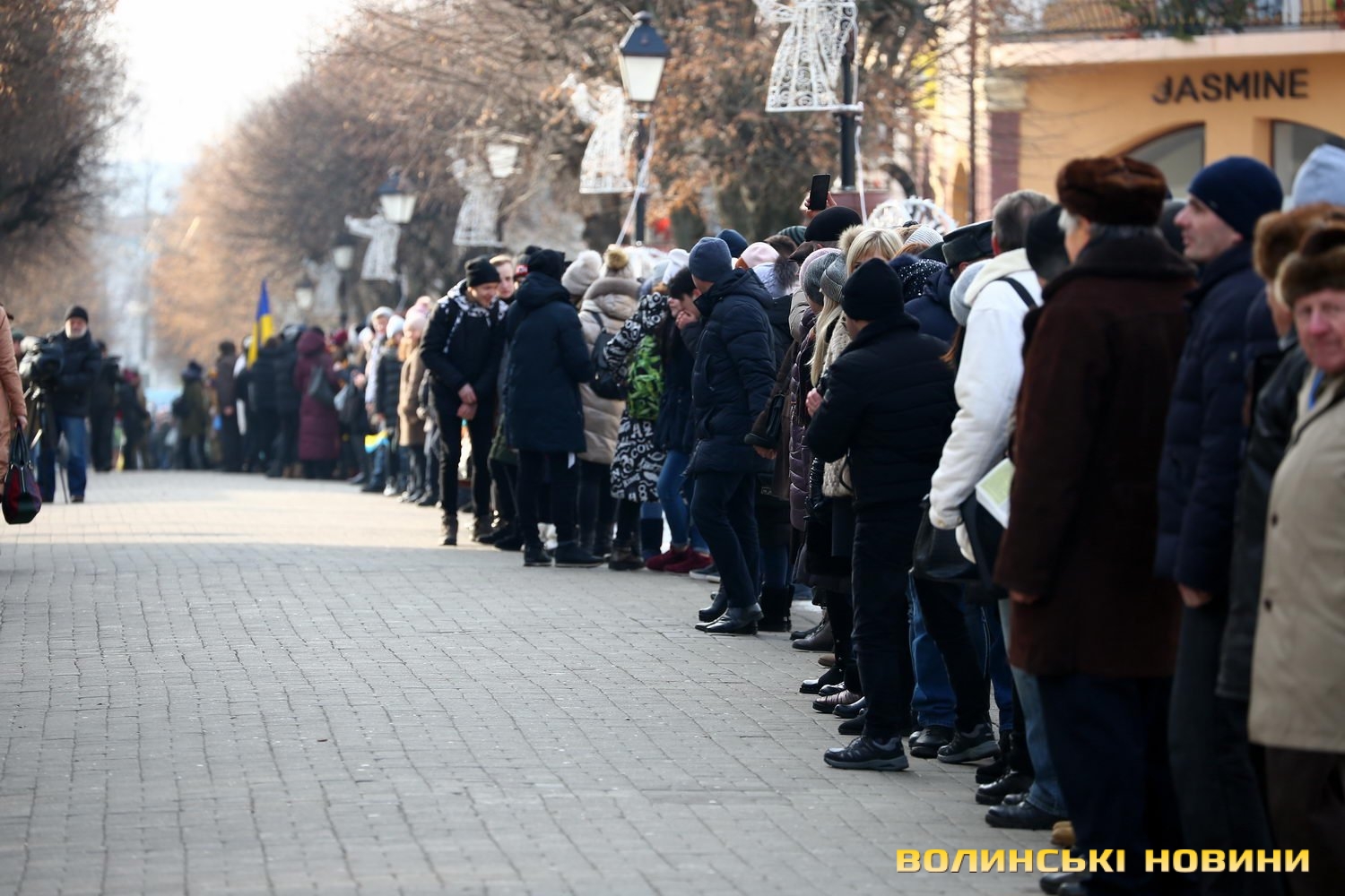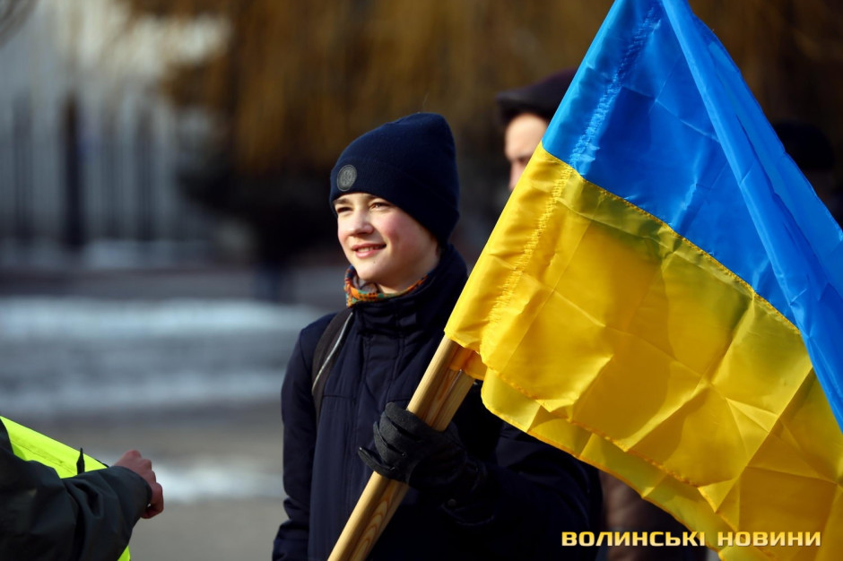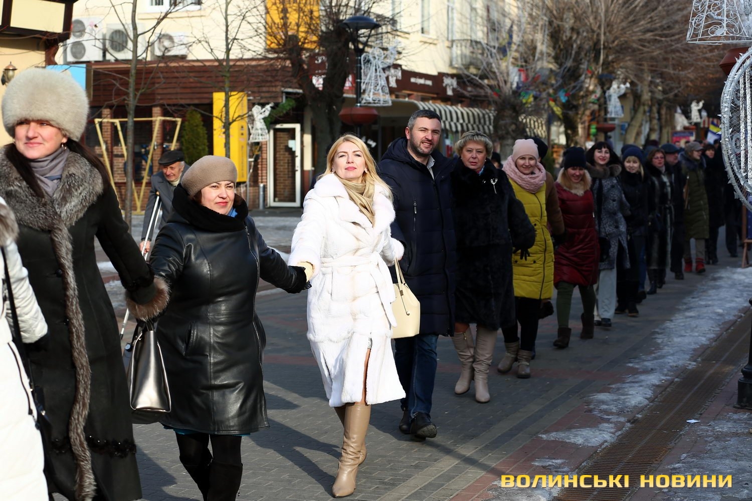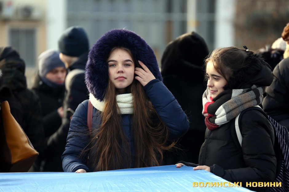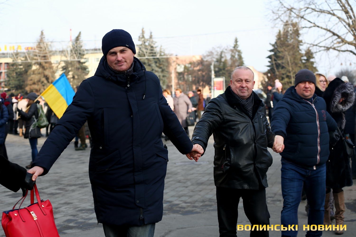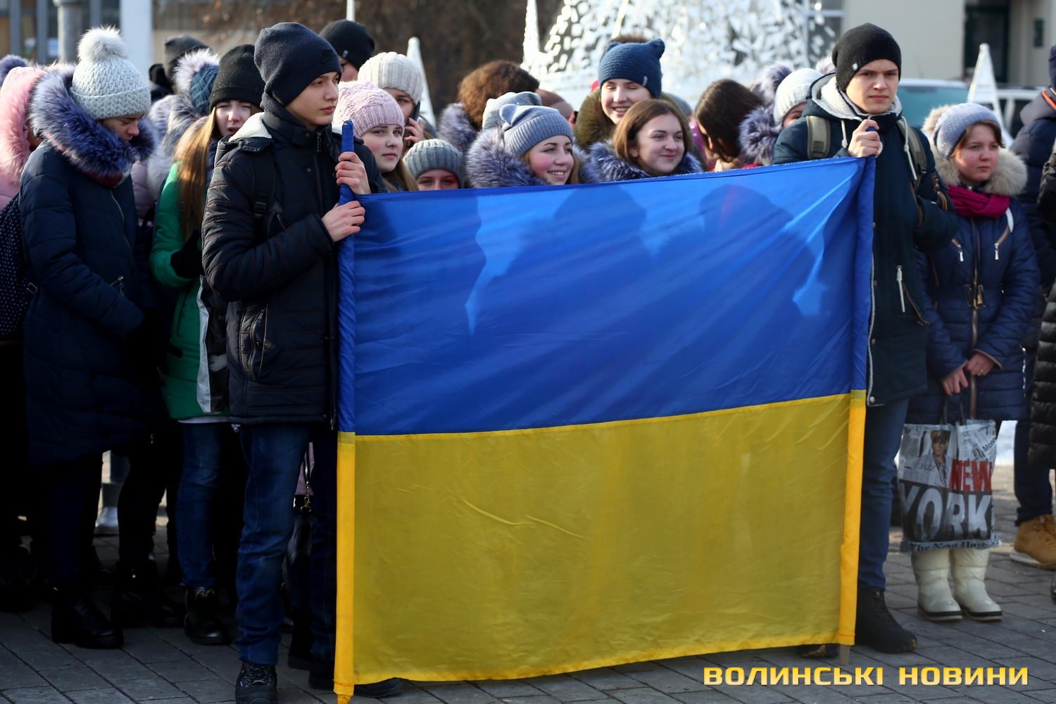 Насамкінець на головній площі обласного центру Волині розгорнули жовто-блакитний стяг, а кожен учасник дійства отримав відзнаку.