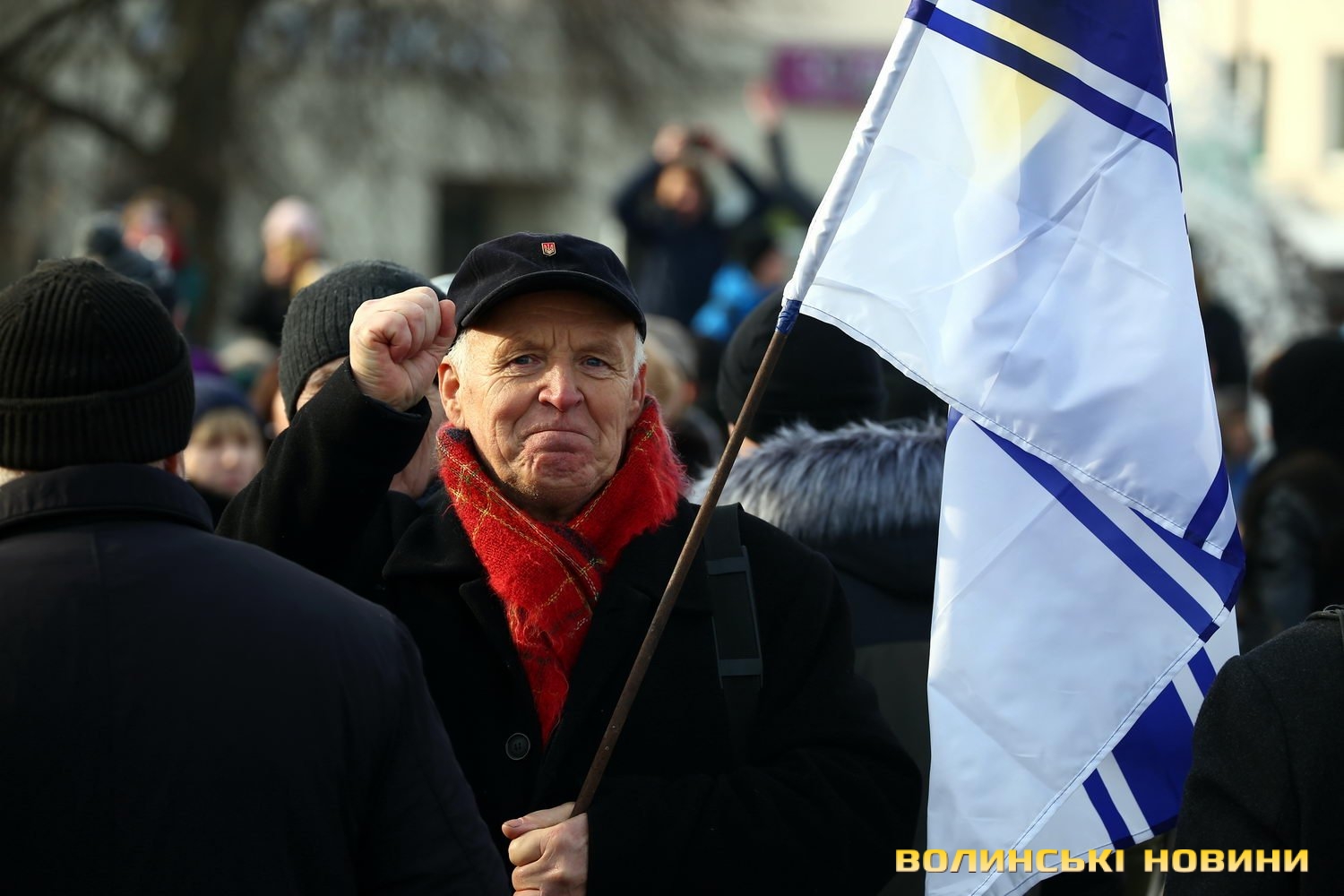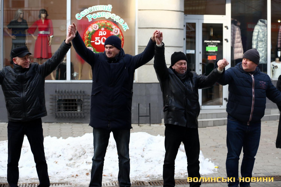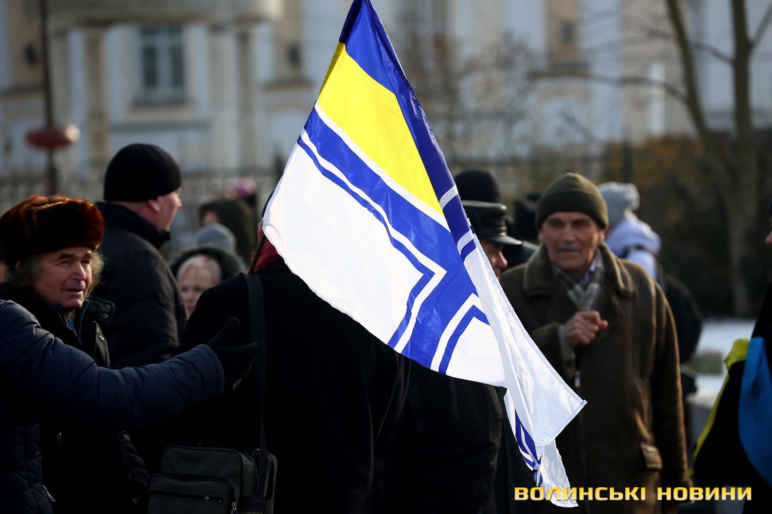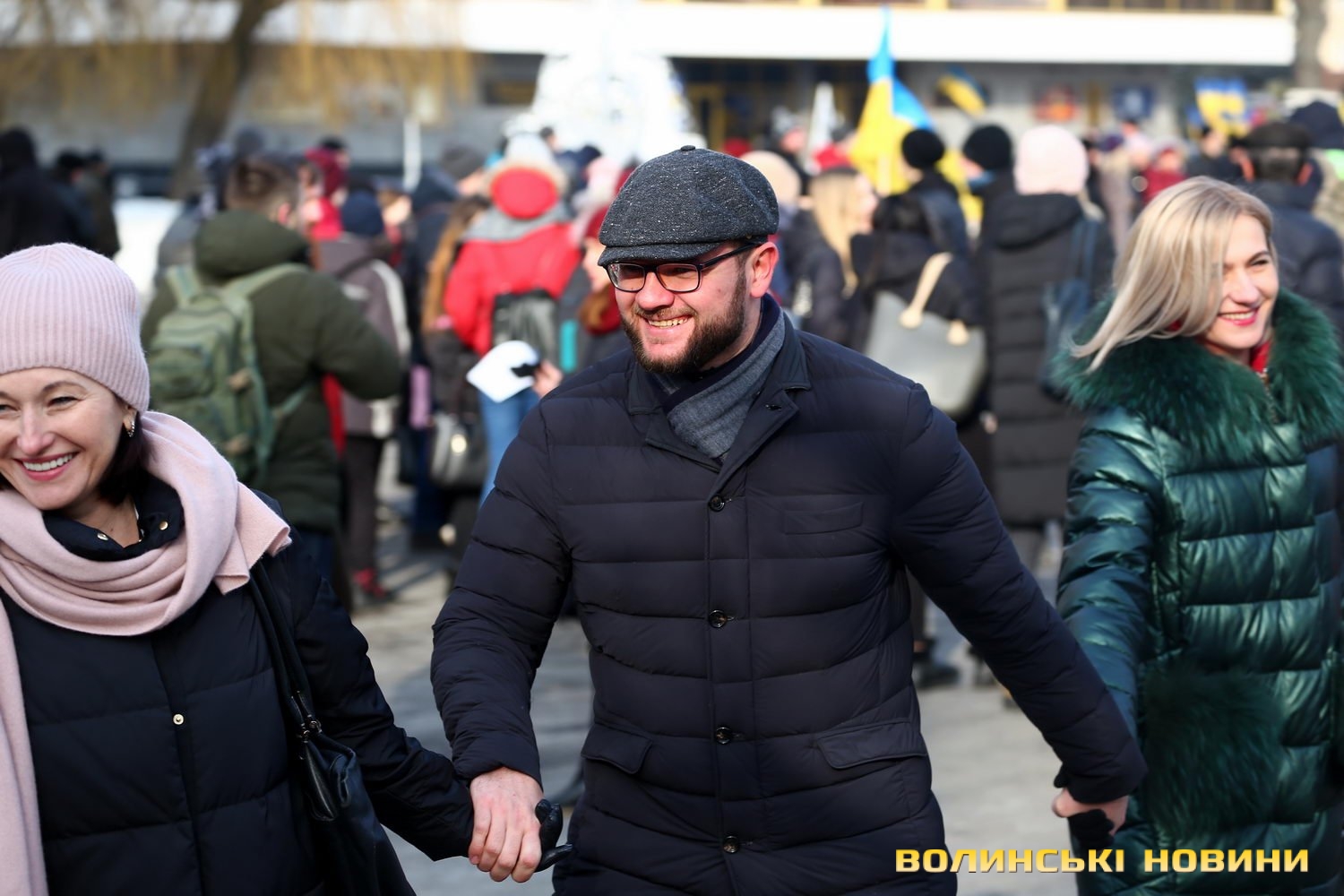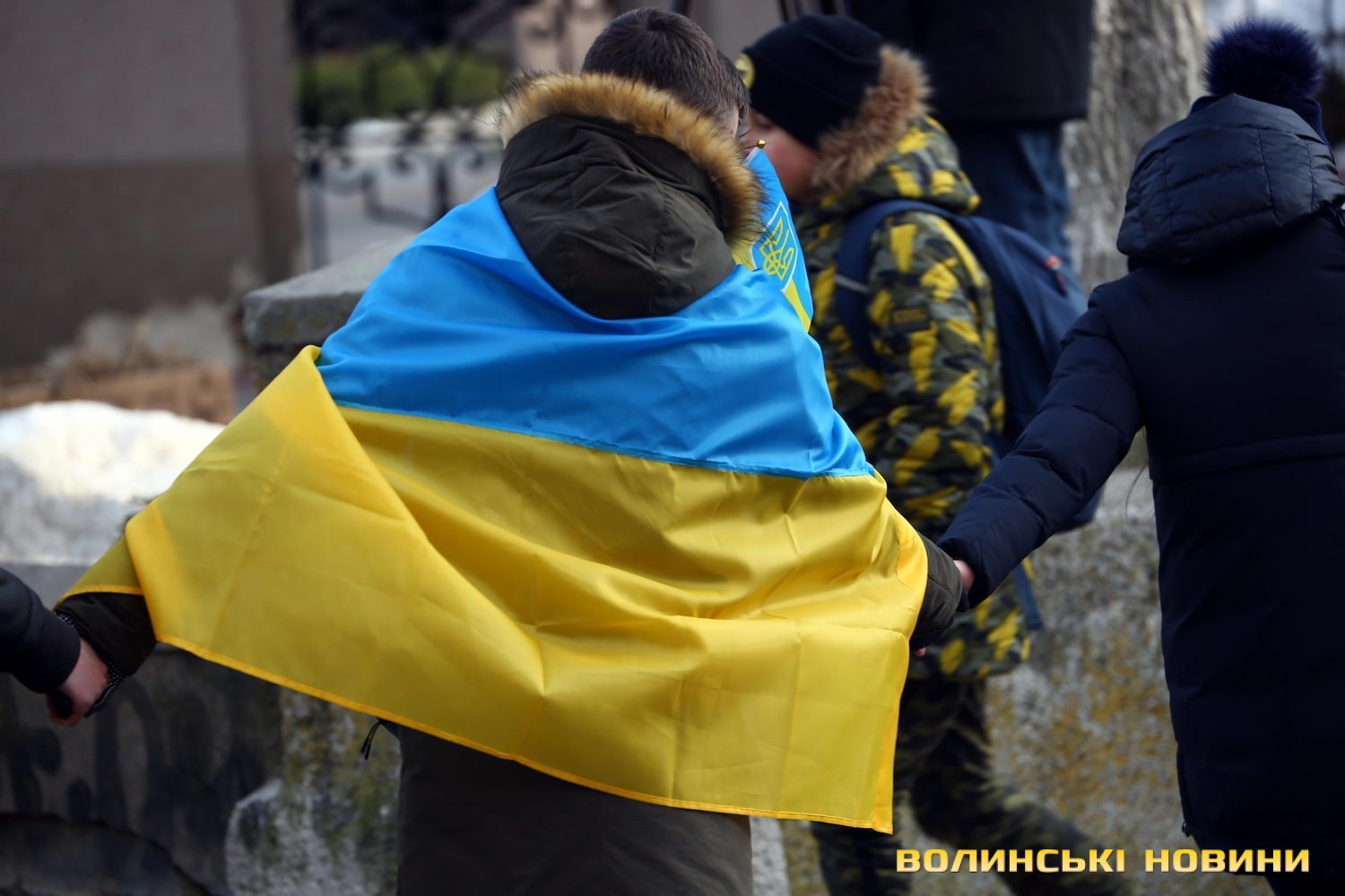 Насамкінець на головній площі обласного центру Волині розгорнули жовто-блакитний стяг, а кожен учасник дійства отримав відзнаку.