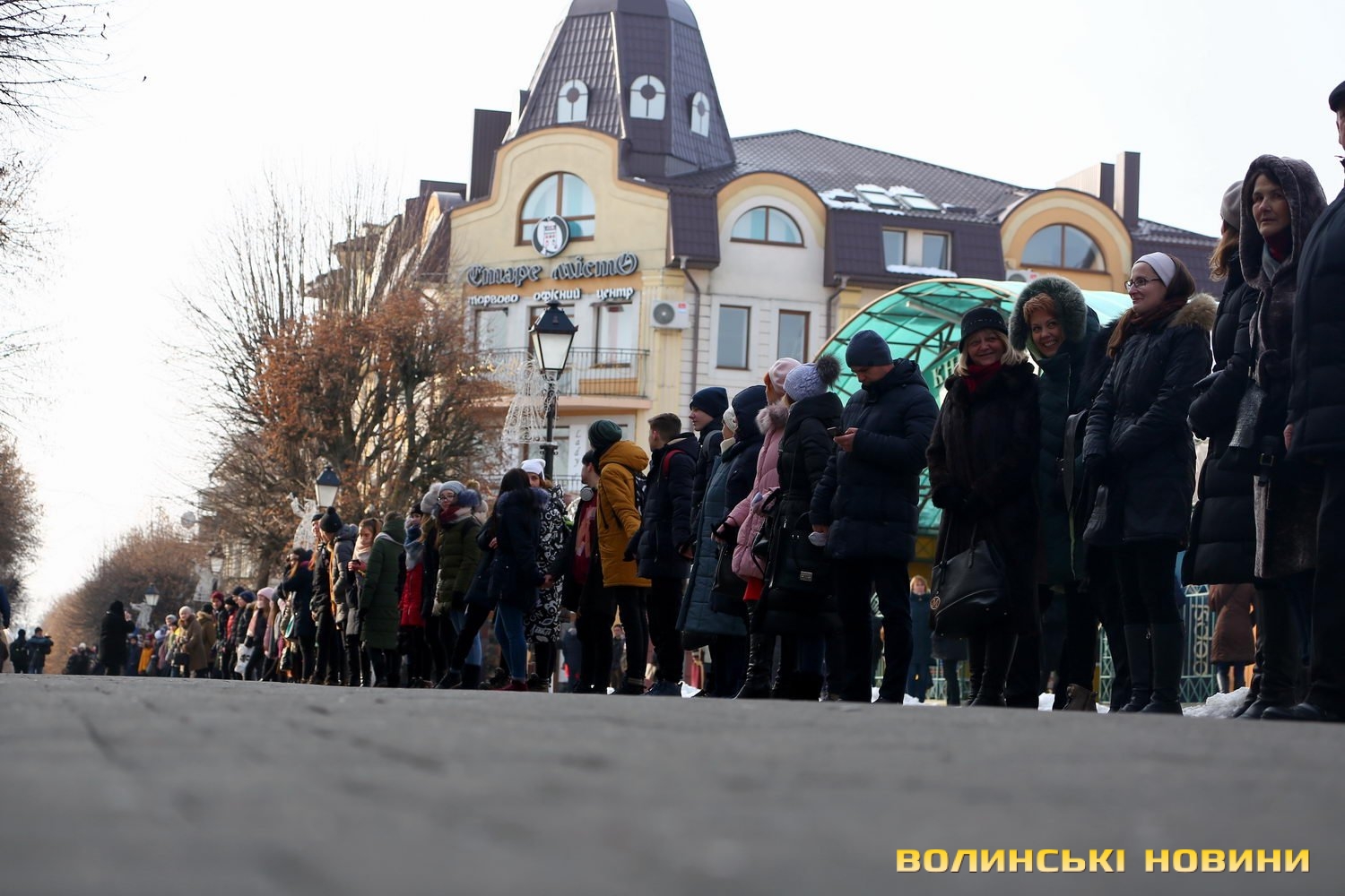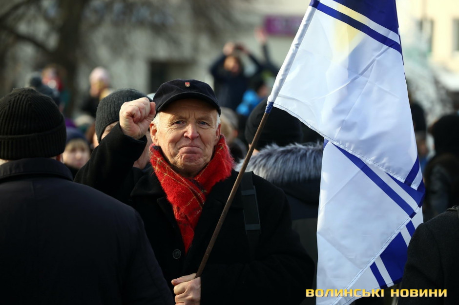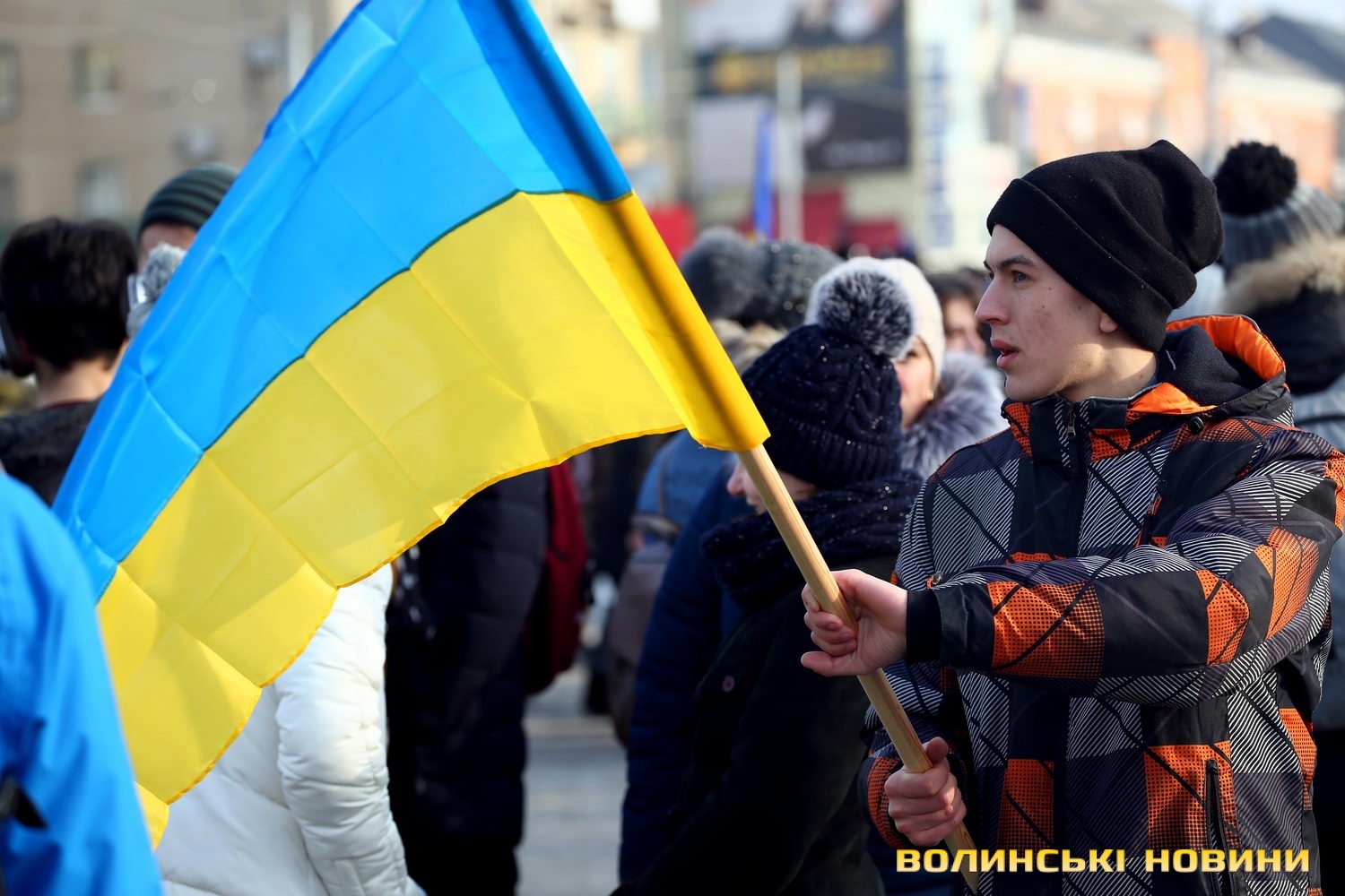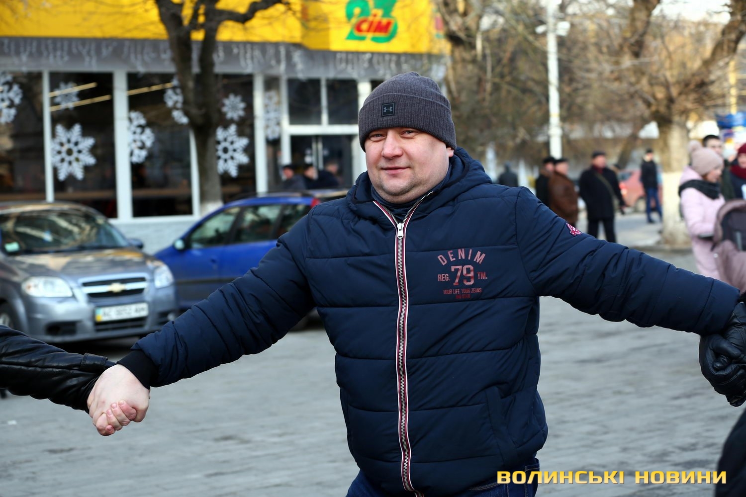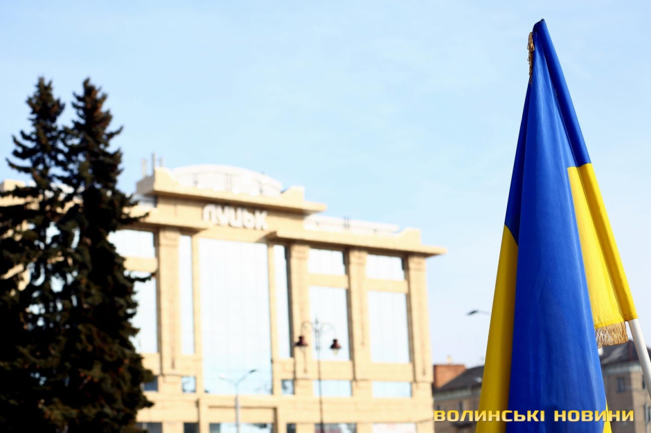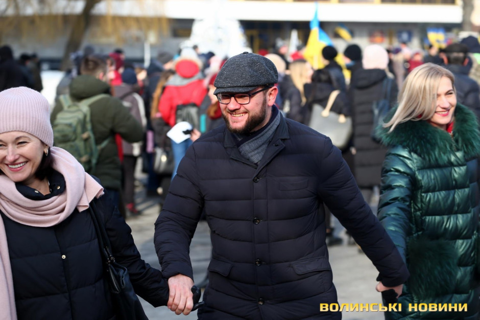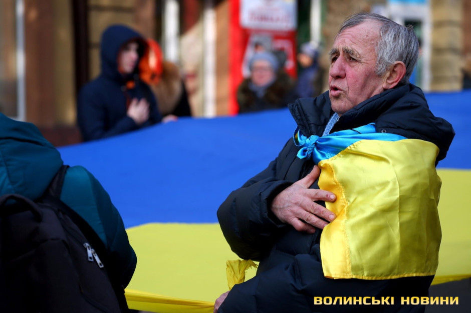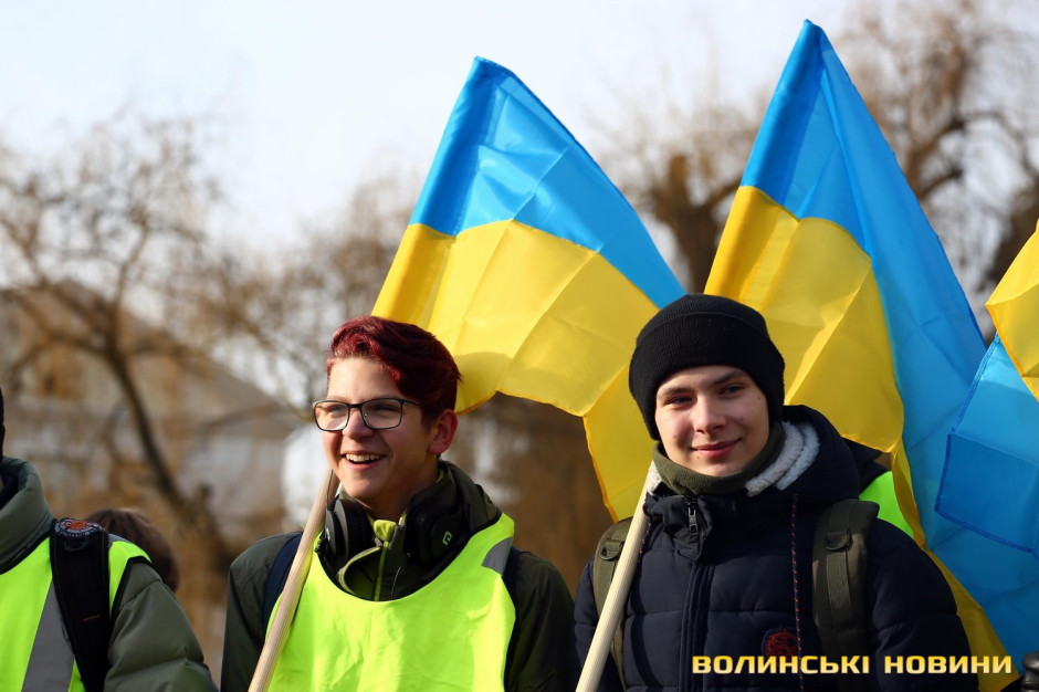 Насамкінець на головній площі обласного центру Волині розгорнули жовто-блакитний стяг, а кожен учасник дійства отримав відзнаку.