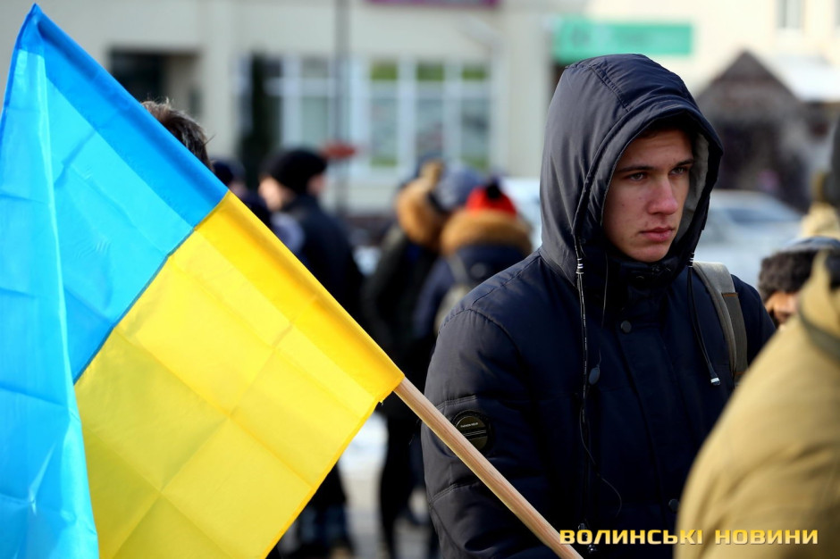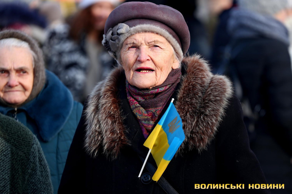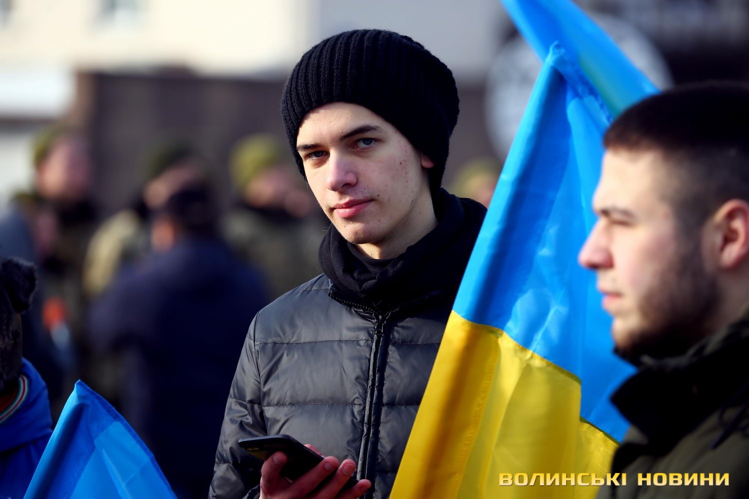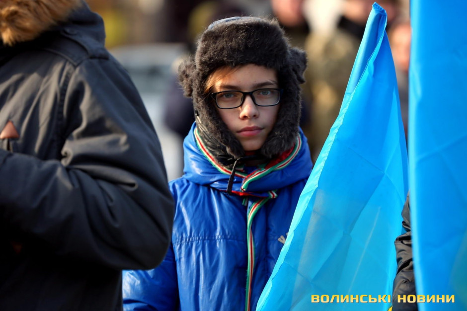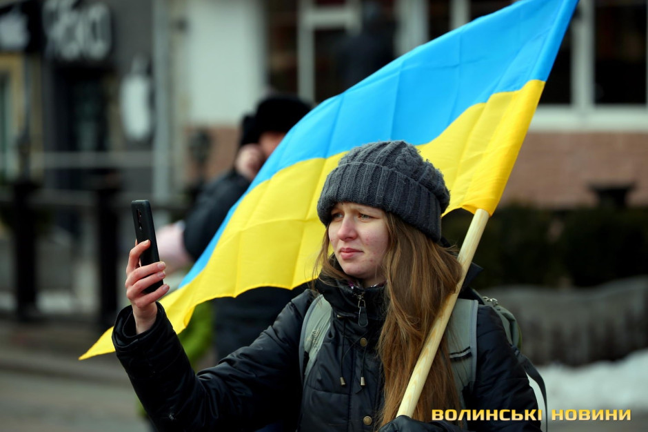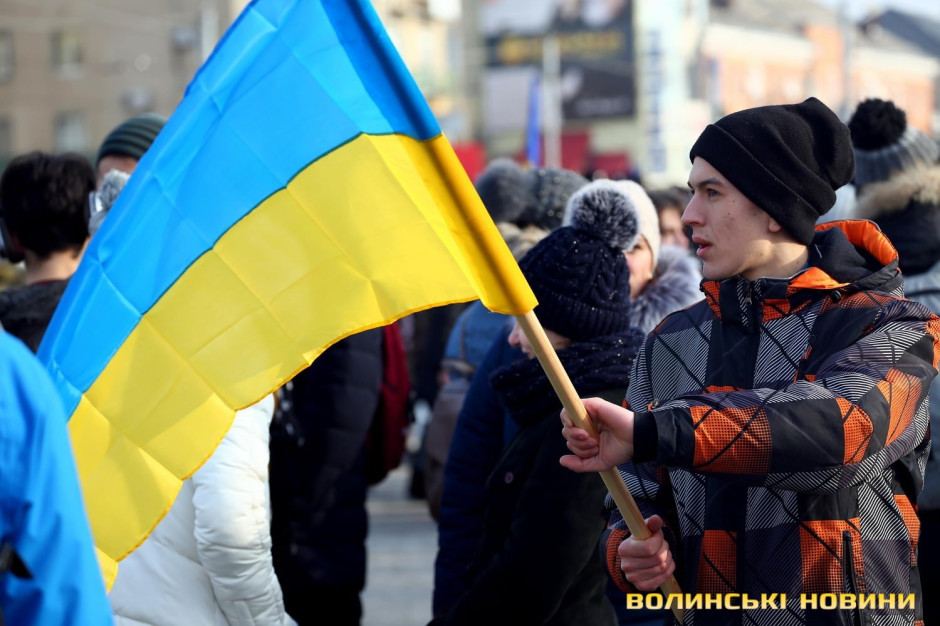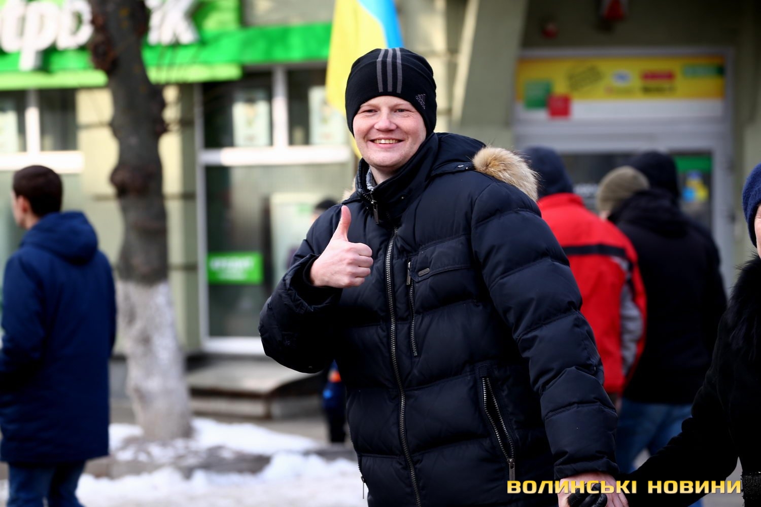 Насамкінець на головній площі обласного центру Волині розгорнули жовто-блакитний стяг, а кожен учасник дійства отримав відзнаку.