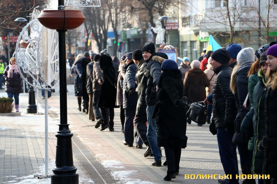 Лучани утворили живий ланцюг у центрі міста. Фоторепортаж