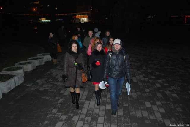 Поблизу пам’ятника Лесі Українці член ВО ВМГО «Демократичний Альянс» Володимир Столярчук і кільканадцять молодих людей запрошували лучан приєднатися до акції.