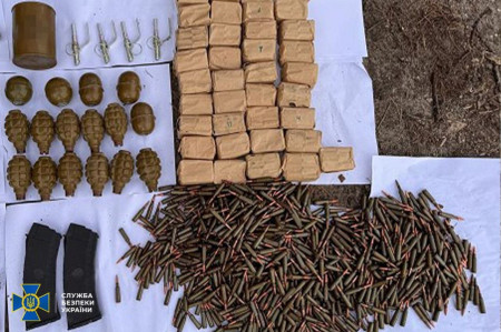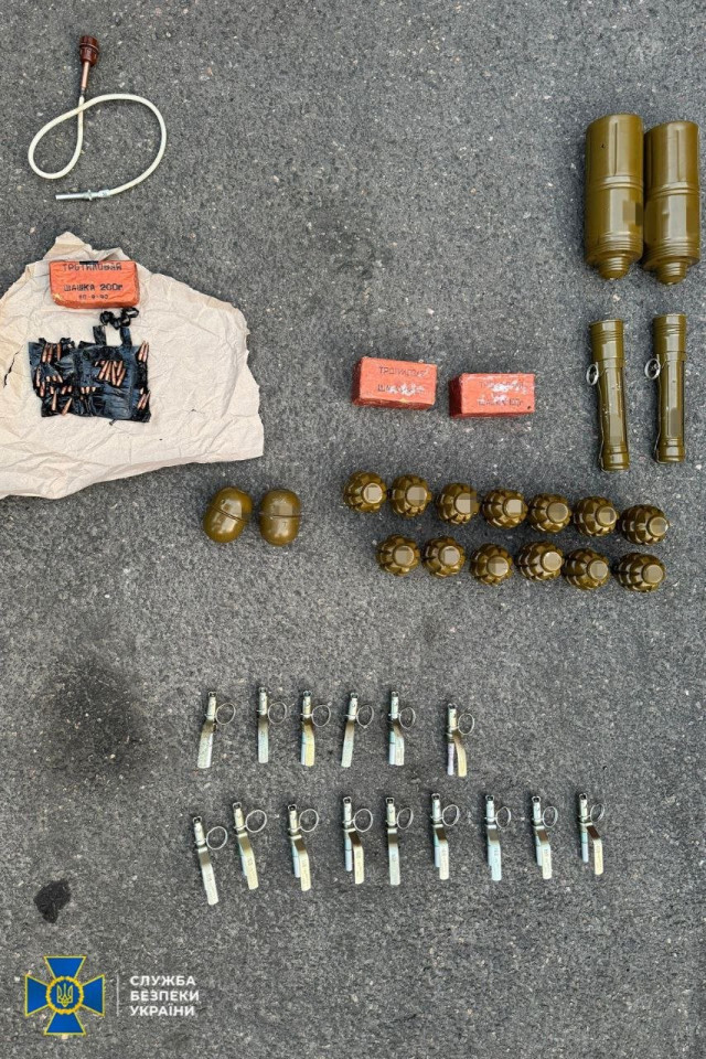 Серед вилученого у зловмисників – російські автомати Калашникова з підствольним гранатометом «Вогнище», партія осколкових гранат та вибухівка.