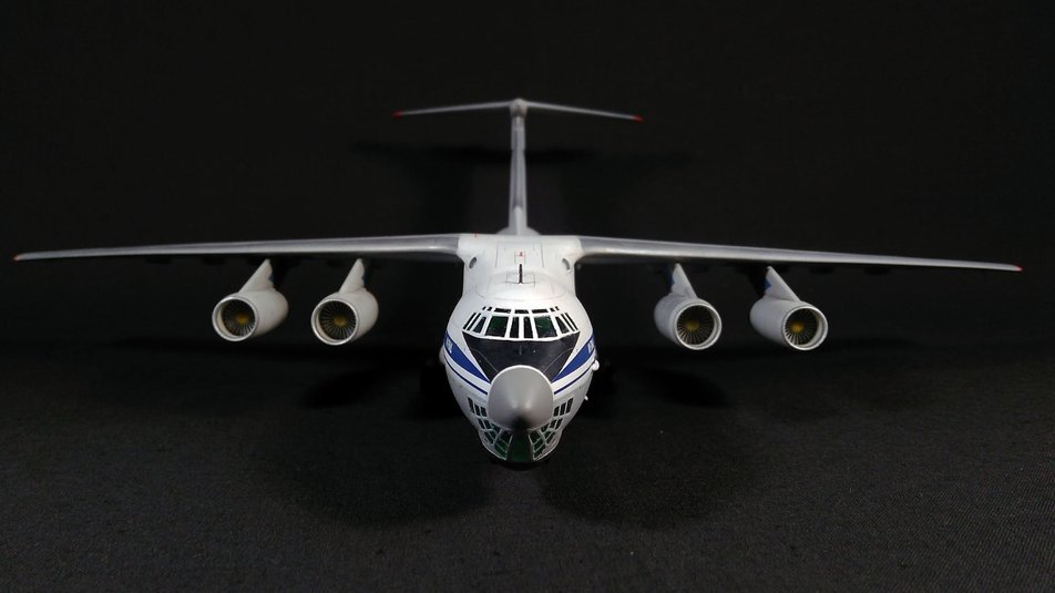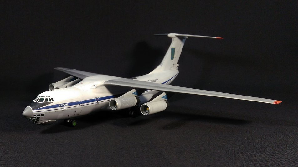 Варіантів збірки було три, каже лучанин: з відкритою рампою на завантаженні та розвантаженні, на підставці в польоті з забраними шасі та злітний варіант на підставці з випущеними шасі та механізацією.З його слів, на коробці було розміщене маркування «Ultimate kit», що означає якісне опрацювання деталей та високу варіативність складання моделі. На моделі літака, каже лучанин, вирішив зробити трохи слідів експлуатації та вицвітання фарби, оскільки сам Іл-76МД був не новим.