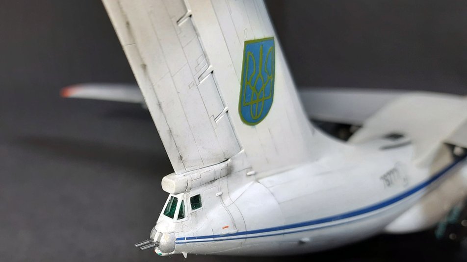 Модель літака – це прототип Іл-76МД з бортовим номером 76777 зі складу 25-ї бригади транспортної авіації, якого у 2014 році при заході на посадку в аеропорту Луганська збили російські військовики. Тоді через катастрофу загинуло 49 військовослужбовців Збройних сил України.