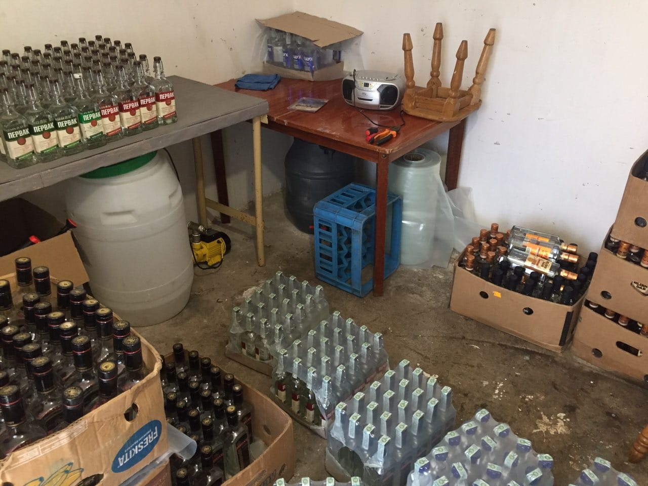 Правоохоронцями під процесуальним керівництвом прокуратури області, в ході проведення санкціонованих обшуків приватного будинку та гаражного приміщення ліквідовано підпільний цех по виготовленню фальсифікованої алкогольної продукції та викрито місце накопичення такого сурогату.