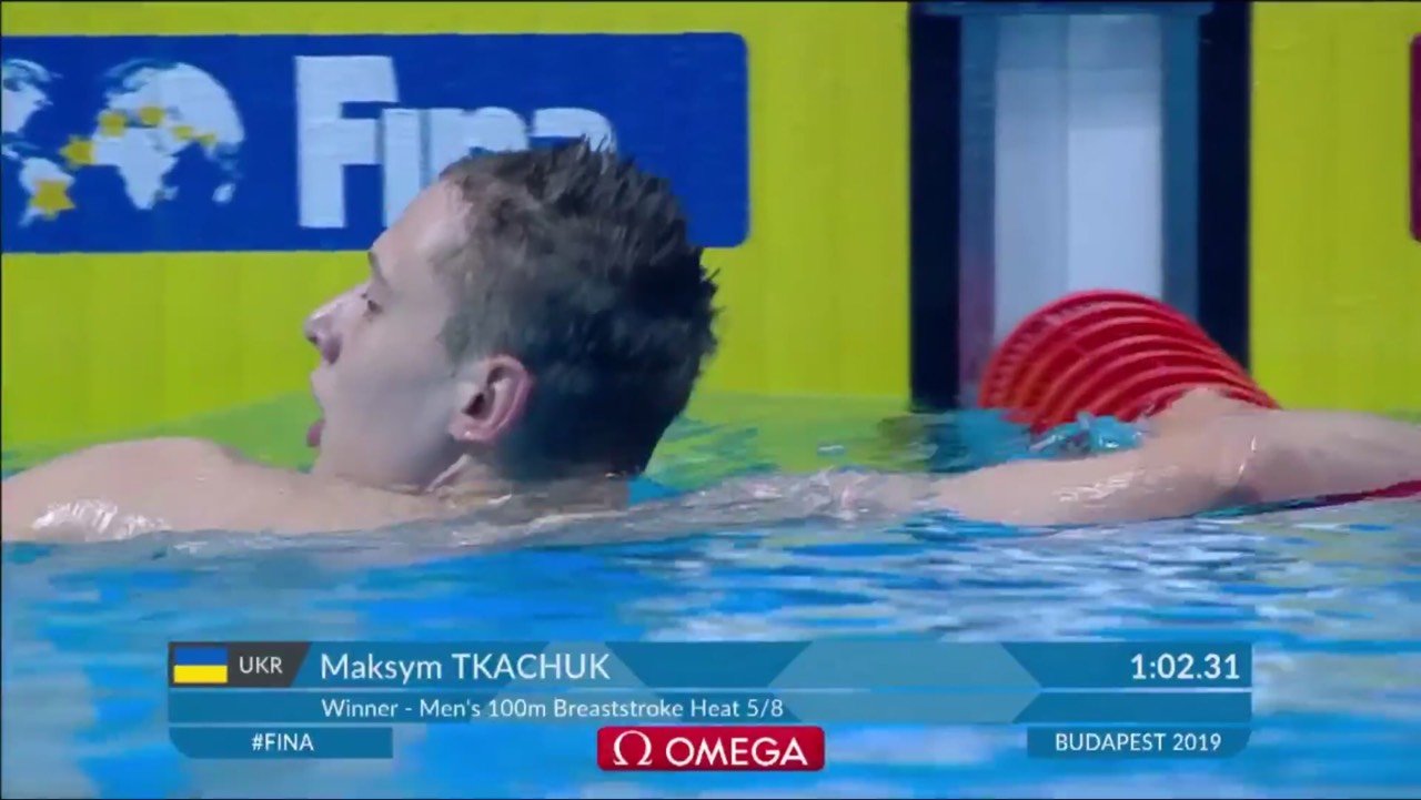 Вчора Максим Ткачук, взявши 100-метрівку брасом за 1:02:31 хв, заявив про себе, як про нового рекордсмена, а також став 12-тим за підсумками змагань.