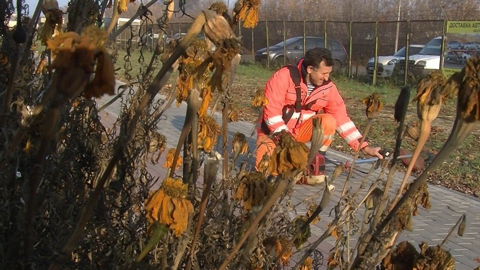 Нині, у листопаді, Василь Рижук збирає насіння чорнобривців і зрізає сухі рослини.