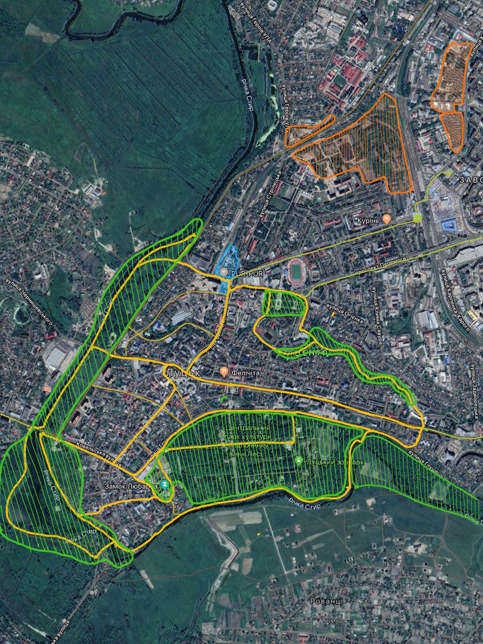 Окрім того, я маю ескіз туристично-рекреаційного кільця в Луцьку: набережна переходить до заплави, що за мостом на Ковельській, де можна було б зробити зону пляжів, далі Старе місто, зокрема будинок скульптора, кірха, замок Любарта, до парку імені Лесі Українки, потім можна з’єднати через територію закинутої фабрики «Лучанка» парк із зеленою зоною за Палацом учнівської молоді, де знаходиться дитяча залізниця, і далі через зелену зону меморіалу ми могли б вийти до стадіону, РЦ «Промінь».