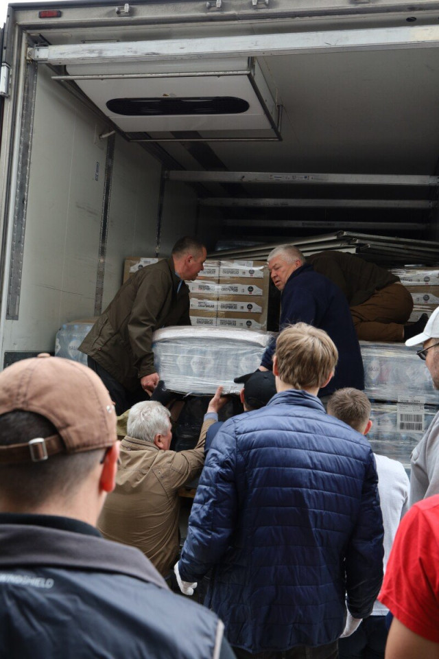 До Луцького центрального пункту допомоги їжу доправили двома вантажівками. Машини уже розвантажили, інформують на сайті міськради.