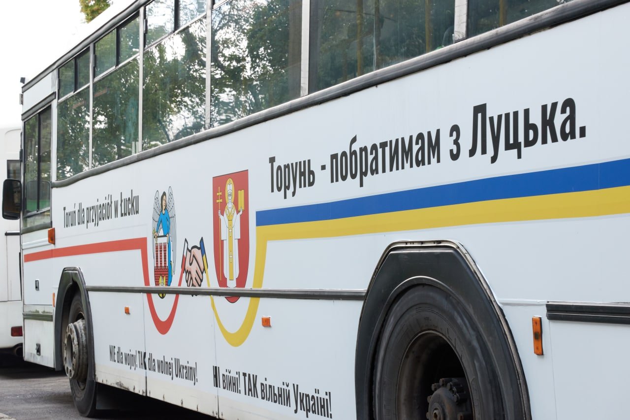 Разом з автобусами з міста Торунь до Луцька прибула також гуманітарна допомога, а саме засоби гігієни, одяг, продукти харчування, зібрані польськими фірмами та небайдужими мешканцями міста Торунь.
