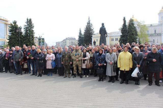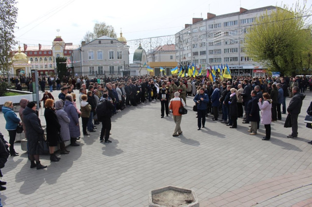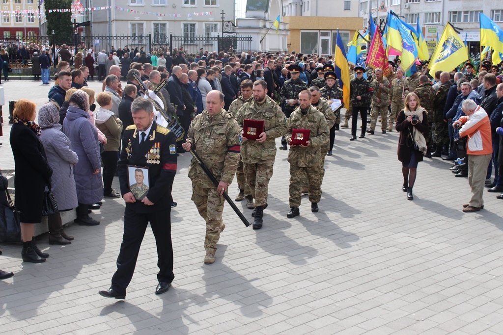 «Смерть – це не кінець буття, а лише завершення земного шляху. Втім, ми відчуваємо жаль утрати, бо більше не побачимо цю людину, але в нас залишається надія, що він буде з Богом. Народна віра говорить, що коли людина помирає під час Великодня, то одразу потрапляє в рай. Ми цього не знаємо, але знаємо, що померла світла людина і їй місце на небесах. Адже він був воїном світла впродовж всього свого життя. Повернувшись з АТО, продовжив вже тут воювати за побратимів, за правду, за те, щоб ми один одного цінували. Ми стоїмо великою громадою й говоримо: «Герої не вмирають, бо живуть їхні вчинки, бо вони живуть у наших серцях», - наголосив духівник.Опісля відбулася громадська панахида на Театральному майдані. Люди ставали на коліна, висловлюючи глибоку повагу та шану.