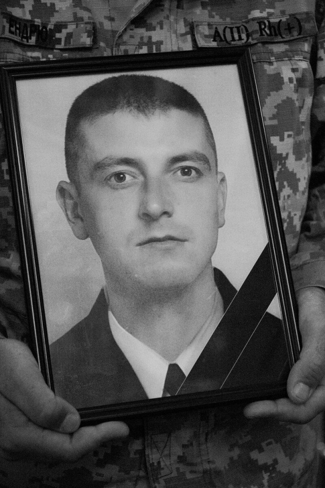 По завершенню панахиди домовини із тілами воїнів під звуки церковного дзвону і солдатської сурми прощальною ходою пронесли Театральним майданом. Насамкінець траурна процесія зупинилася перед фотостендом «Герої Небесної Сотні – Загинули за єдність України» і виконала Державний Гімн.