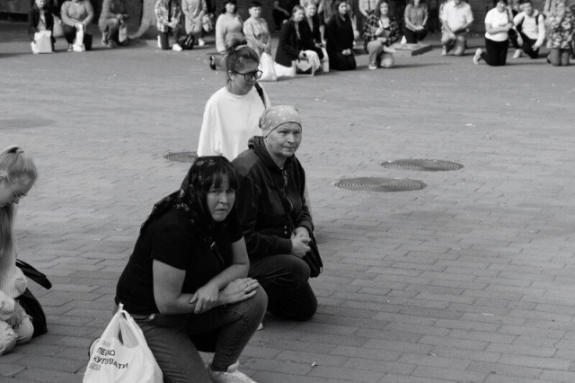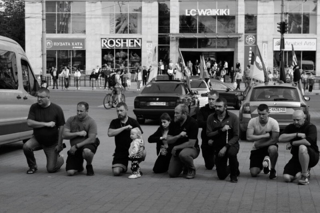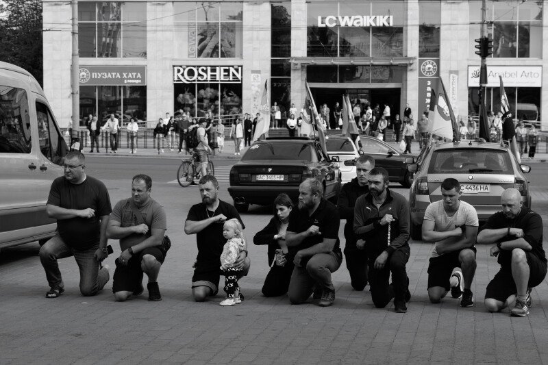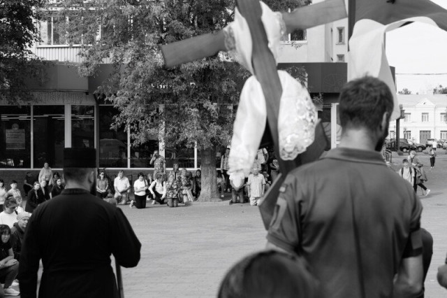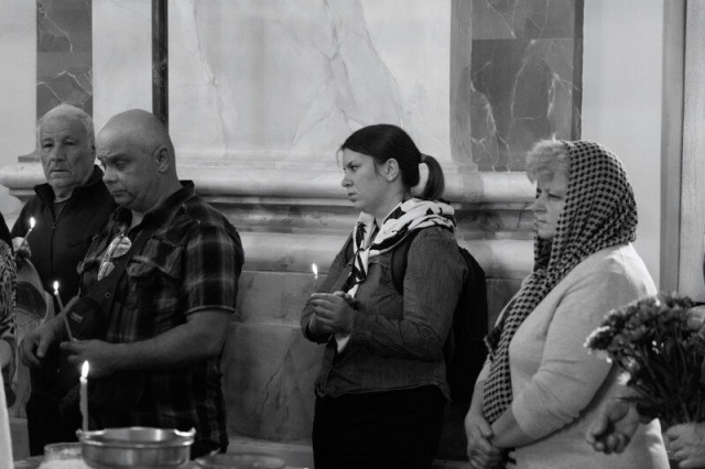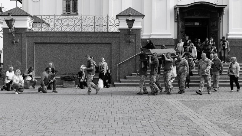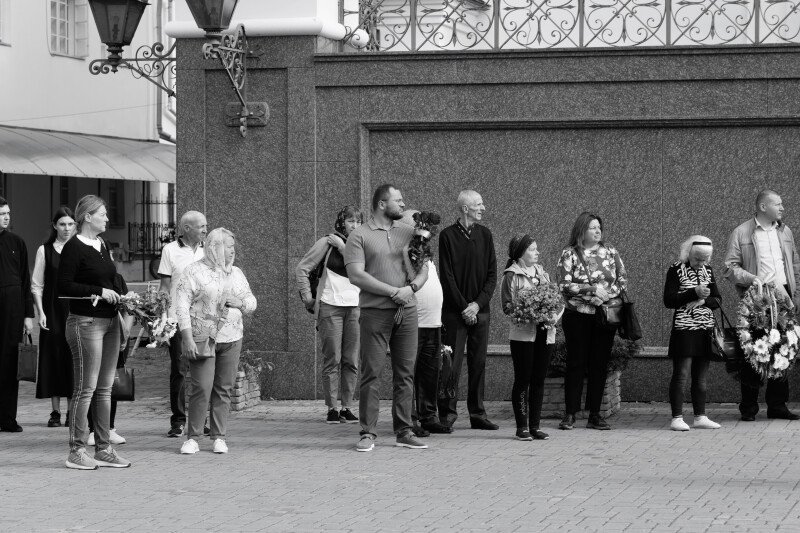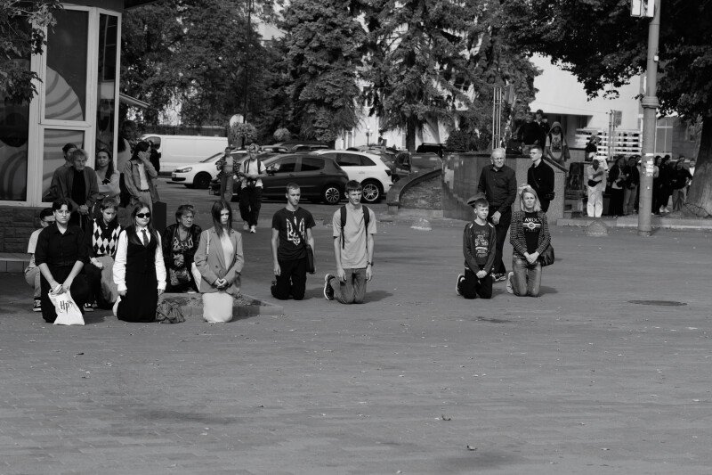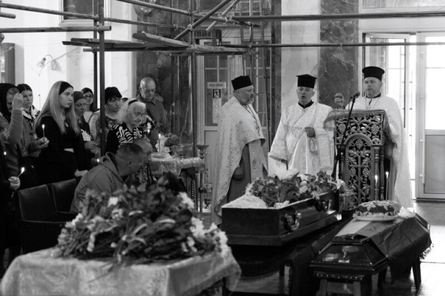 Після завершення богослужіння труну з тілом покійного захисника пронесли Театральним майданом. Біля фотостенда пам’яті загиблих Героїв присутні зупинилися і виконали Державний Гімн України.