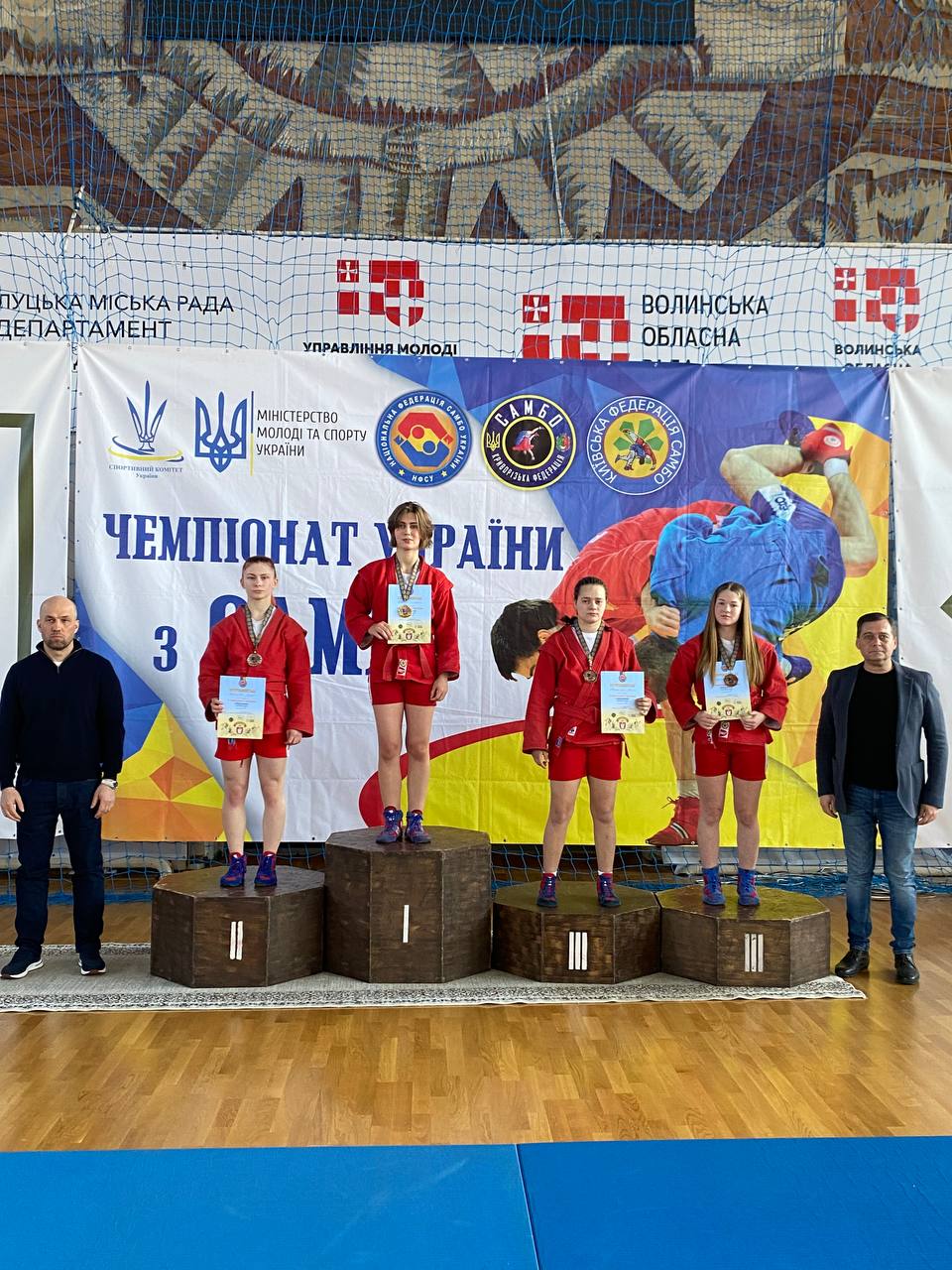 Учениця Луцького ліцею №19 Ярина Лудзяк, учениця Луцького ліцею №26 Ангеліна Онопрійчук і учень Луцького ліцею №28 Тимур Джафаров стали призерами чемпіонату й виконали нормативи майстра спорту України з боротьби самбо.