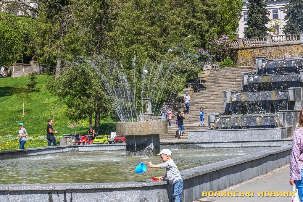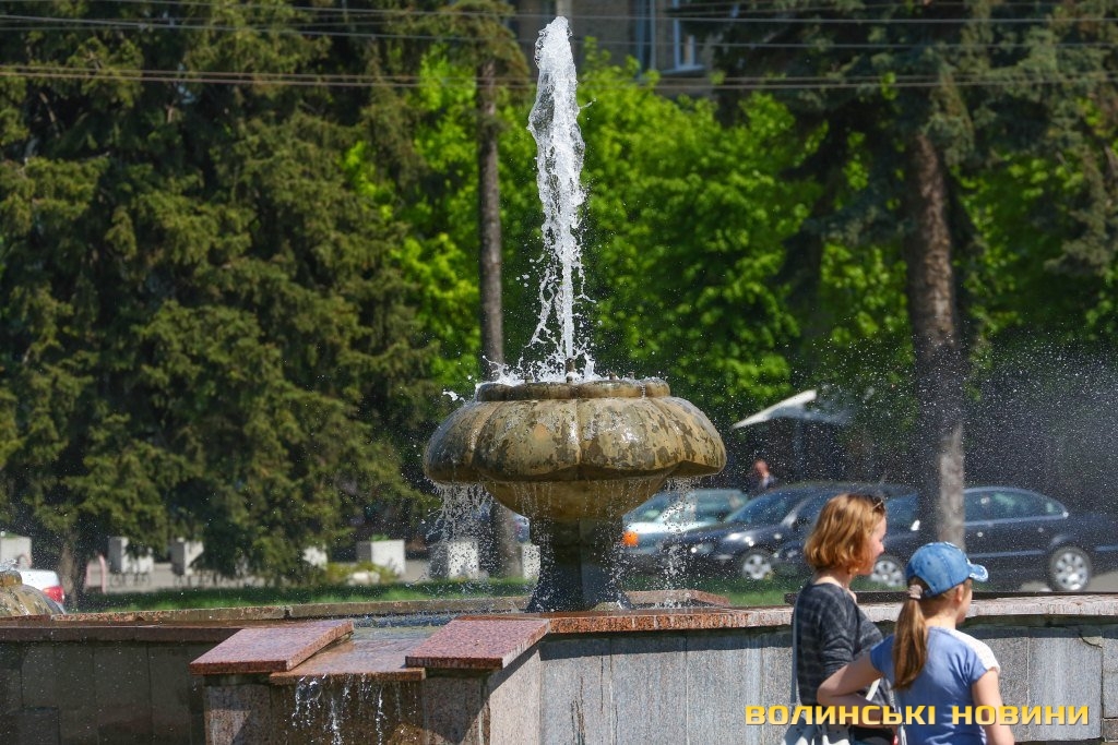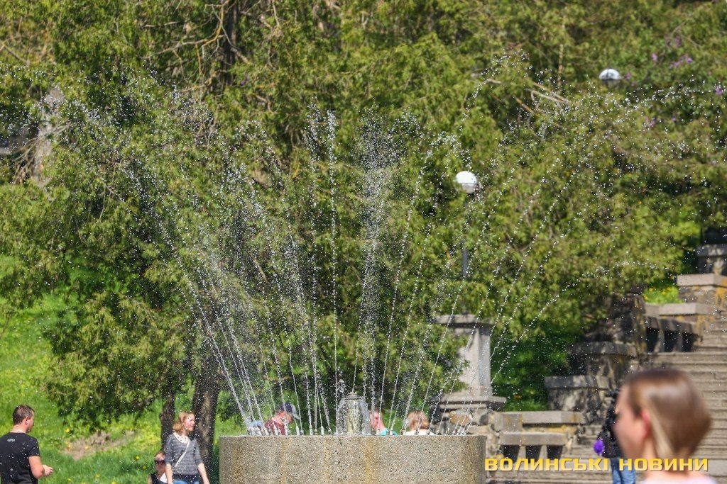 Водограї поблизу центрального входу до парку імені Лесі Українки та у сквері навпроти гімназії № 4 на проспекті Волі запрацювали 29 квітня.