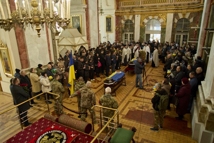Сьогодні у кафедральному соборі Святої Трійці в Луцьку відспівали військовослужбовців Андрія Міщука та Андрія Смалюка, які загинули від ворожих куль, боронячи Україну на фронті.