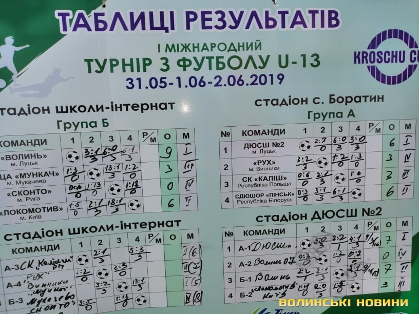 Так, у Першому Міжнародному турнірі з футболу «KROSHUCUP – 2019» (U-13) серед дітей 2006 року народження, що проходив у період із 31 травня по 2 червня, взяли участь 8 команд. Серед гостей змагань були учасники не лише із Луцька, а й з інших міст України, таких як Київ, Мукачево, Винники, а також із Латвії та Польщі.