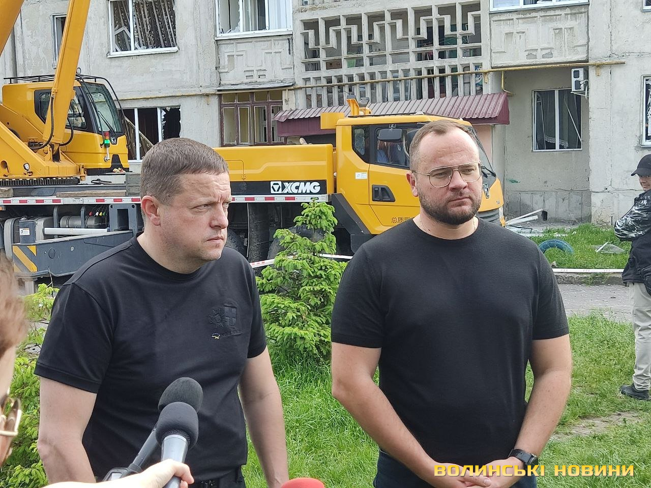 «Дев'ятиповерхівка зазнала найбільших пошкоджень. Крім того, маємо ще пошкоджені будинки – багатоповерхові і менші. У них вибиті вікна, двері – щонайменше 2000 пошкоджених вікон. Пошкоджено і навчальний заклад, одну державну установу. На жаль, один із перевізників має пошкодження 13 автобусів. Проте ситуація з перевезеннями контрольвана», – зазначив Луцький міський голова.