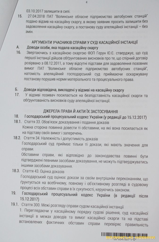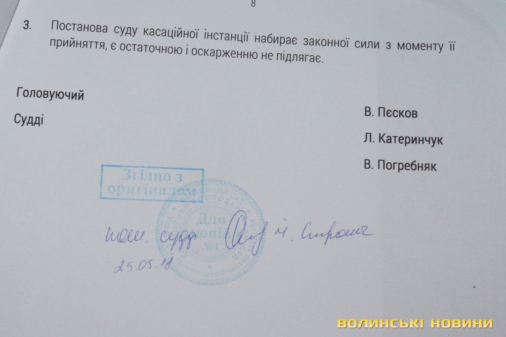 Після цього підприємець подав касаційну скаргу у Верховний Суд, просячи скасувати постанову Рівненського апеляційного господарського суду, а рішення Господарського суду Волинської області залишити в силі. Своєю чергою, ПАТ «ВОПАС» просило залишити касаційну скаргу без задоволення.