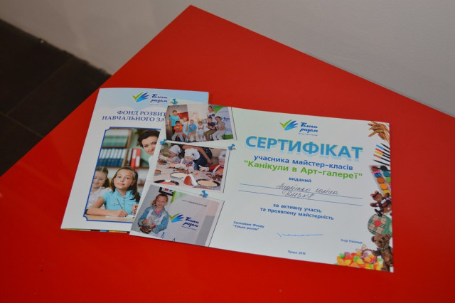 Впродовж двох місяців у арт-галереї ЦУМу, що в обласному центрі, діти опановували мистецтво хенд-мейду. Під супроводом народних майстрів вони виготовляли листівки, вироби із сіна, навчалися ліпленню з глини, розмальовували печиво, створювали текстильну іграшку, вишивали бісером, виготовляли шоколадні смаколики, і за це отримали сертифікати маленьких шоколатьє.