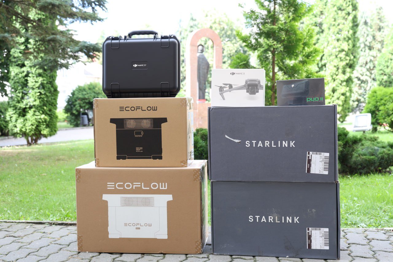 Військова частина А1325 отримала квадрокоптер DJI Mavic 3, квадрокоптер DJI Mavic 3 Enterprise (Thermal), два супутникові модеми Starlink Internet Satelite Dish Kit V2 Roam+Starlink Etherner Adapter, зарядну портативну електростанцію EcoFlow Delta MAX, зарядну портативну електростанцію EcoFlow Delta, комплект ALIENTECH DUO II DUO2458SSD 2.4G/5.8G для пультів RCN1 PRO. SMART антена+перехідники.