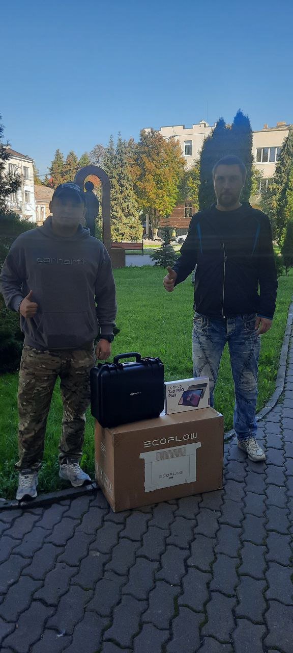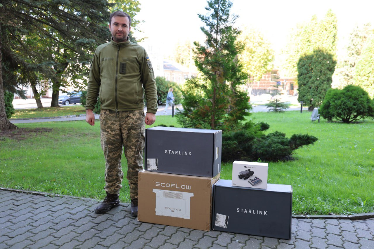 Для потреб першого самохідного артилерійського дивізіону в/ч А 4977 передали дві супутникові системи зв’язку Starlink, зарядну станцію EcoFlow Delta Max та квадрокоптер DJI Mavic 3 Pro.