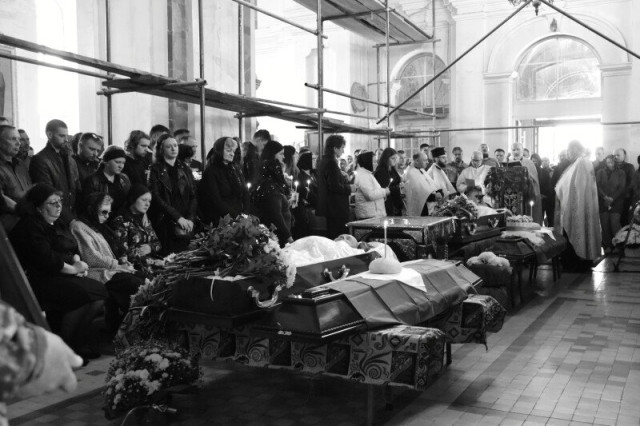 Після завершення панахиди домовини з тілами Героїв прощальною ходою пронесли Театральним майданом.