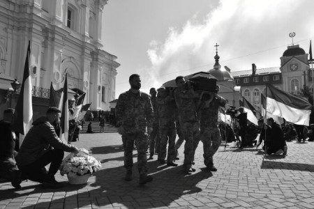 Після завершення панахиди домовини з тілами Героїв прощальною ходою пронесли Театральним майданом.