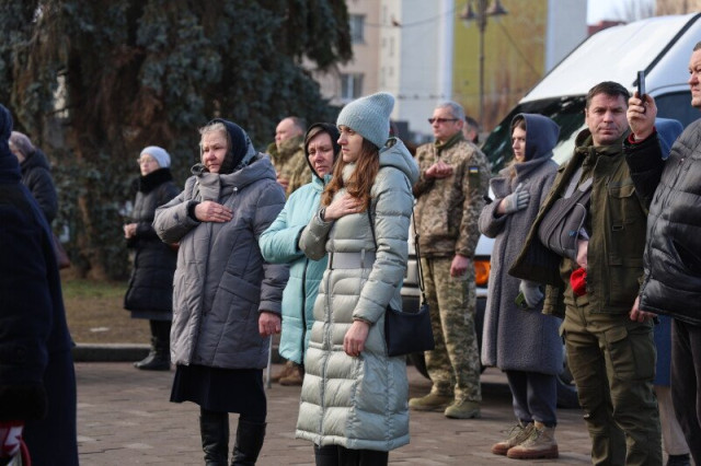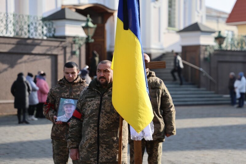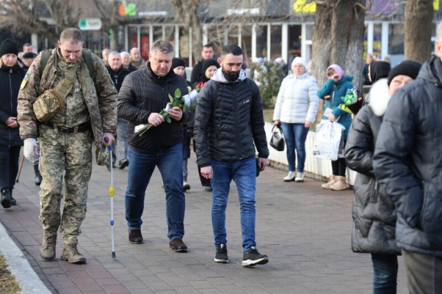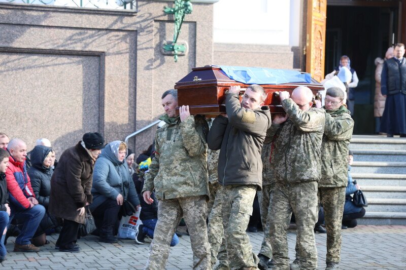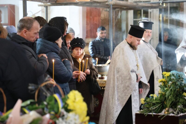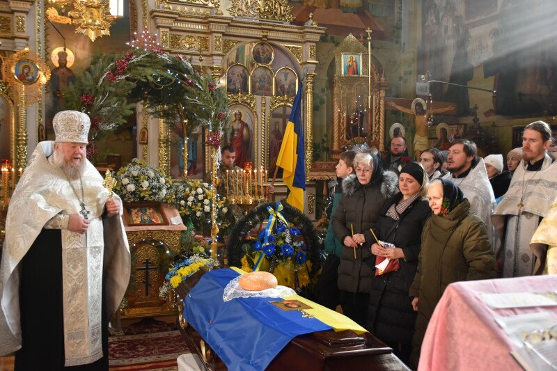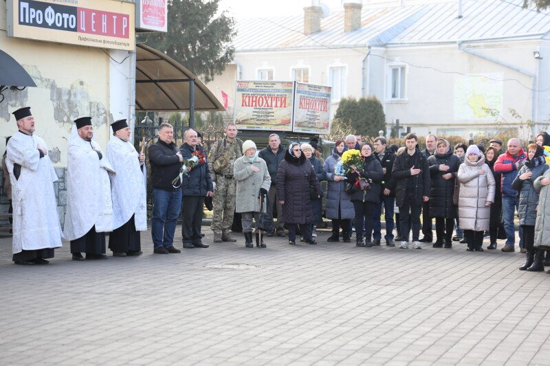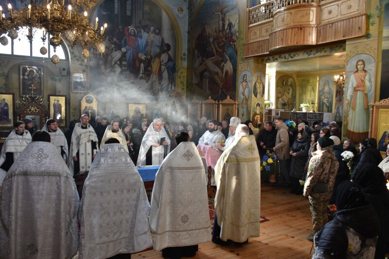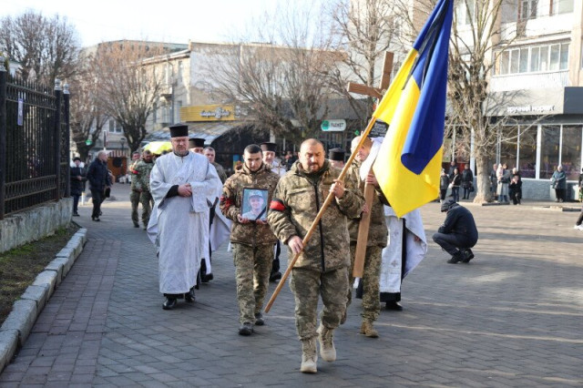 Провести воїна в останню дорогу прийшли секретар міської ради Юрій Безпятко, побратими, родина та небайдужі жителі громади.