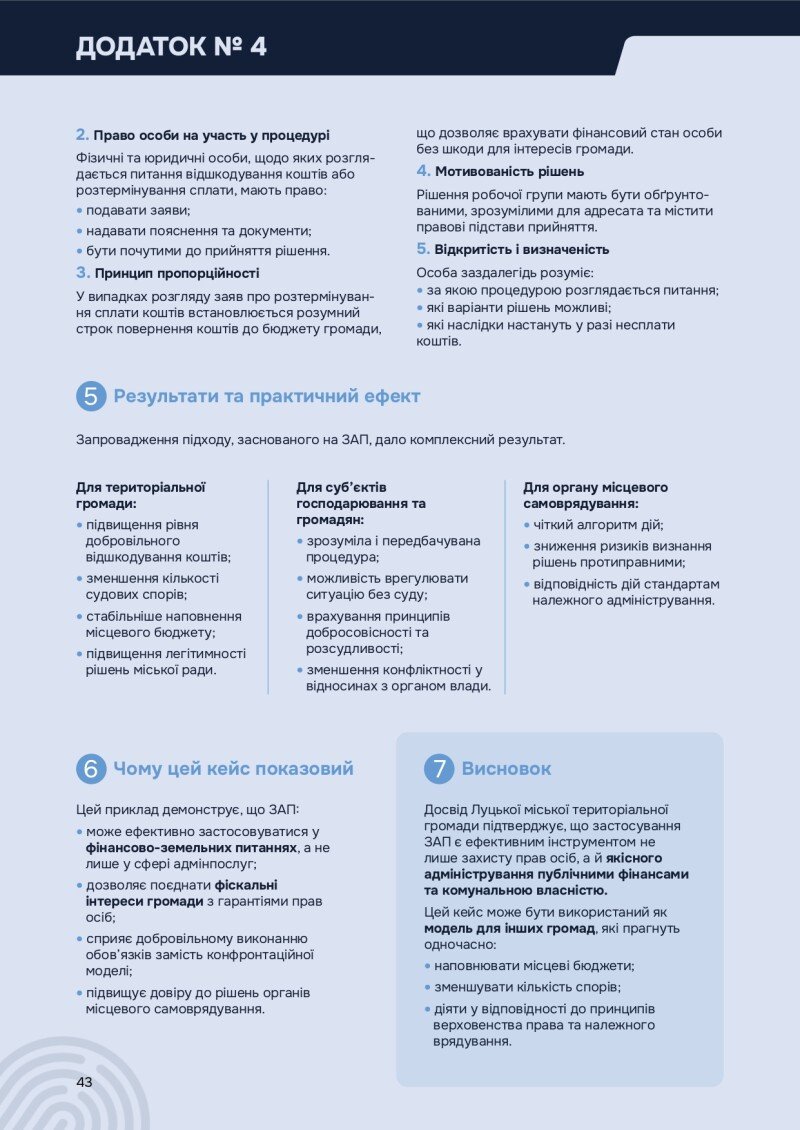 Як відзначило Міністерство юстиції України у звіті, досвід Луцької міської територіальної громади підтверджує, що застосування ЗАП є ефективним інструментом не лише захисту прав осіб, а й якісного адміністрування публічними фінансами та комунальною власністю.