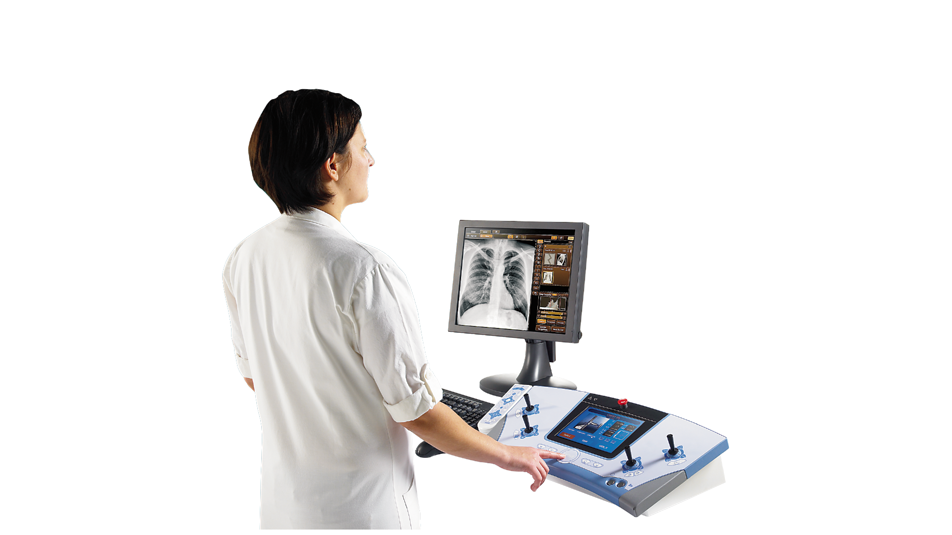 Мова - про рентгеноскопічну систему на базі дистанційно-керованого рентгенівського апарату на три робочих місця з цифровим плоскопанельним детектором та принтером сухого друку.