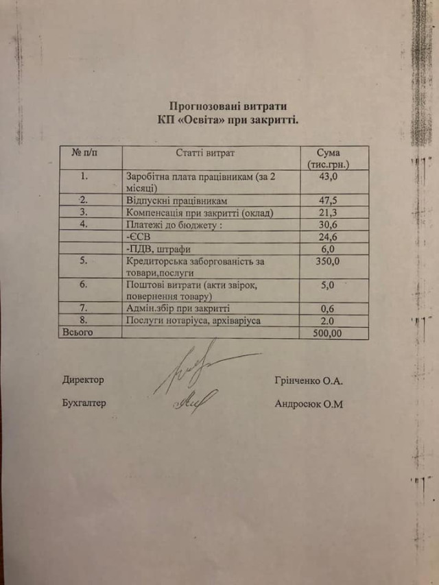 6) підприємству було запропоновано перейти на власні площі обласної ради по вул. Винниченка, зроблено ремонт на кошти бюджету, однак керівництво підприємства вирішило не переходити і подало кошторис на ліквідацію», – зазначає Ірина Вахович.