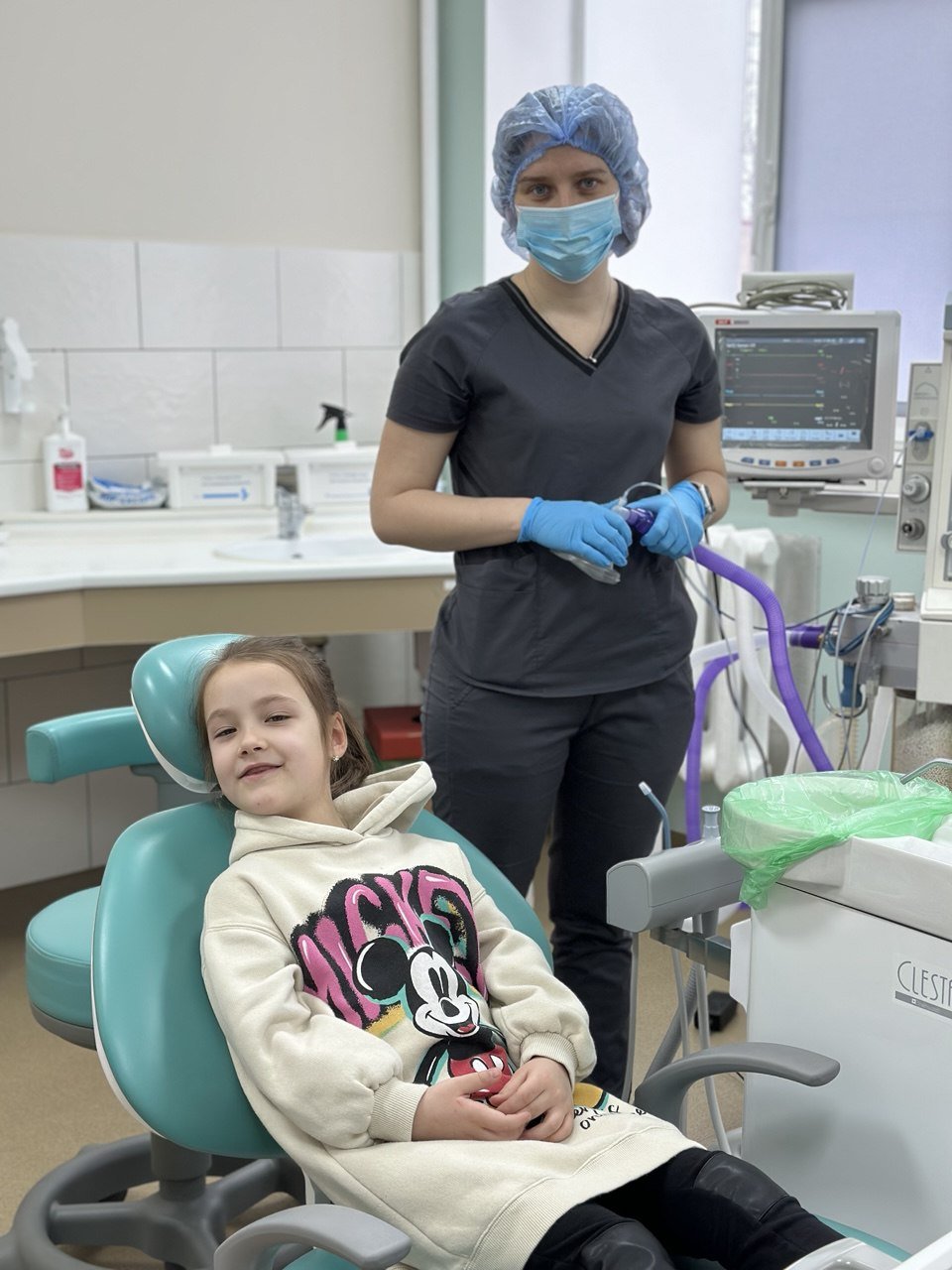 Насамперед, це відділення інтенсивної терапії нашого медзакладу, яке навіть розташоване неподалік стоматкабінету, і достатня кількість медперсоналу: анестезіологів, анестезистів. Щодня вони виконуються велику кількість маніпуляцій з огляду на значний об’єм хірургічної роботи, а отже мають великий досвід роботи з дітьми. Ще одна велика перевага – стаціонар, адже це можливість провести ніч після лікування в палаті. Попри те, що лікування зубів під загальним знеболенням – процедура одного дня, бувають і винятки. Наприклад, пацієнти із інших населених пунктів Волинської області або інших областей. Або ж супутні захворювання у дитини: серцево-судинні, нервової системи, психічні розлади. Добу або й декілька діб за необхідності такі пацієнти можуть перебувати в палаті з батьками під наглядом медперсоналу.