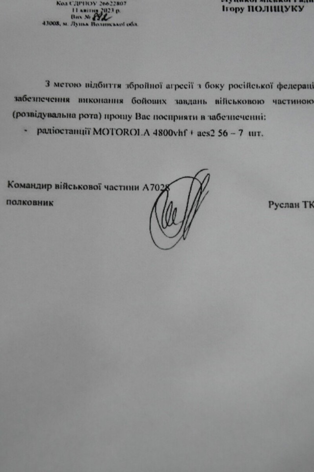 Повідомила: військовослужбовці конче потребують засобів зв’язку. Йдеться про рації, тож просить муніципалітет посприяти у їх закупці.