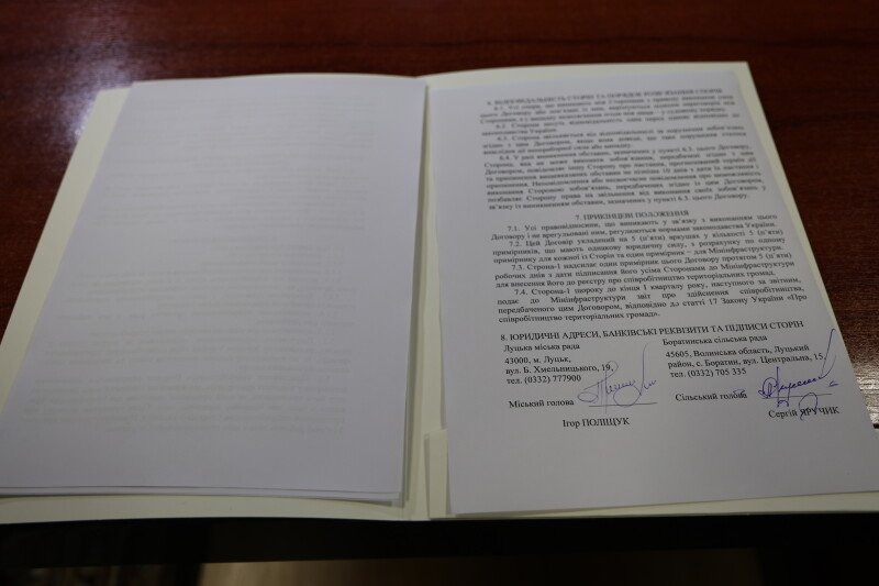 Луцька міська рада в особі міського голови Ігоря Поліщука та Боратинська сільська рада в особі сільського голови Сергія Яручика підписали договір про співробітництво територіальних громад у формі реалізації спільного проєкту у сфері управління мережами централізованого водопостачання та централізованого водовідведення міста Луцька.