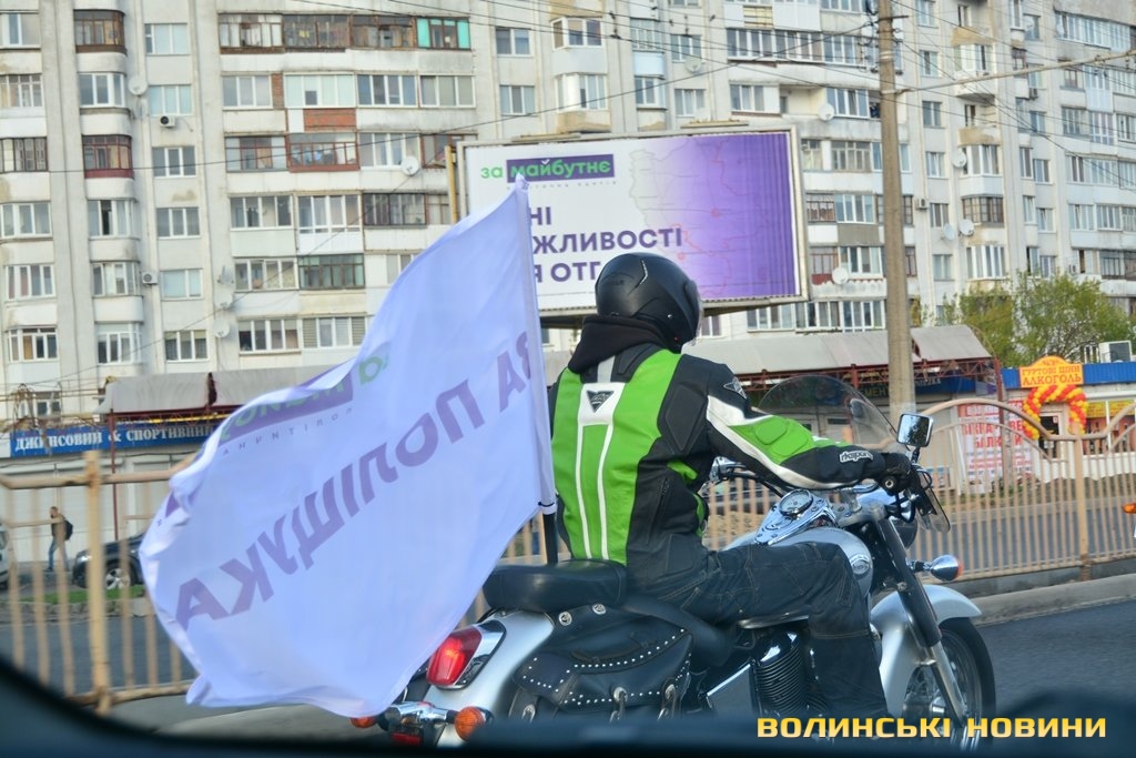 «Сьогодні ми вирішили провести невеличку акцію на підтримку кандидата на посаду міського голови міста Луцька Ігоря Поліщука із партією «ЗА Майбутнє». Хочемо його підтримати, тому що це молода, енергійна та талановита людина. Він дуже багато зробив для міста, для лучан. У нас є величезна надія, що на посаді мера обласного центру він зможе зробити наш Луцьк ще кращим, ще більш комфортним не лише для його мешканців, а й для гостей з усієї України в цілому», - розповів приватний підприємець Андрій Малінський, який разом з однодумцями взяв участь у мотопробігу.