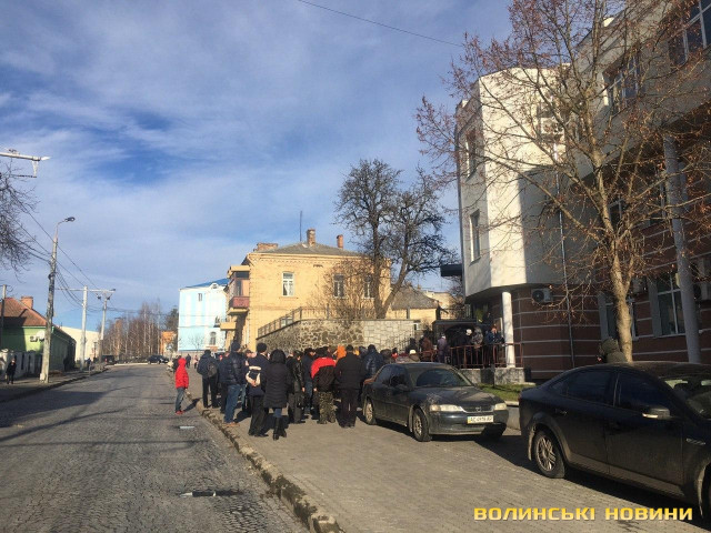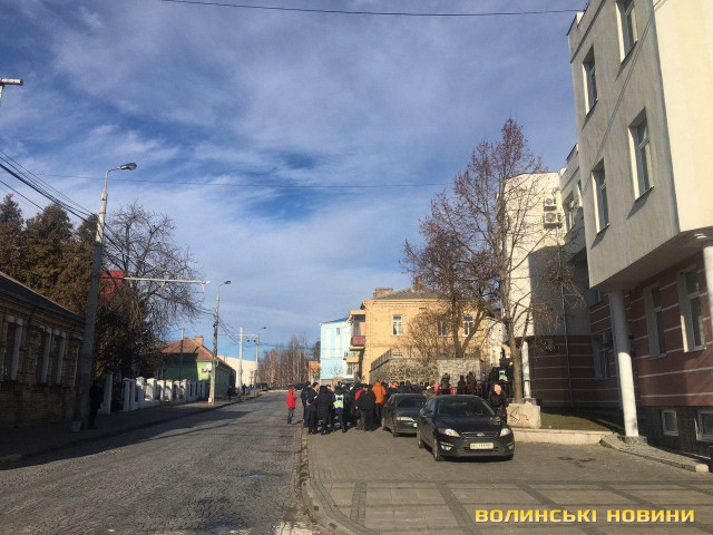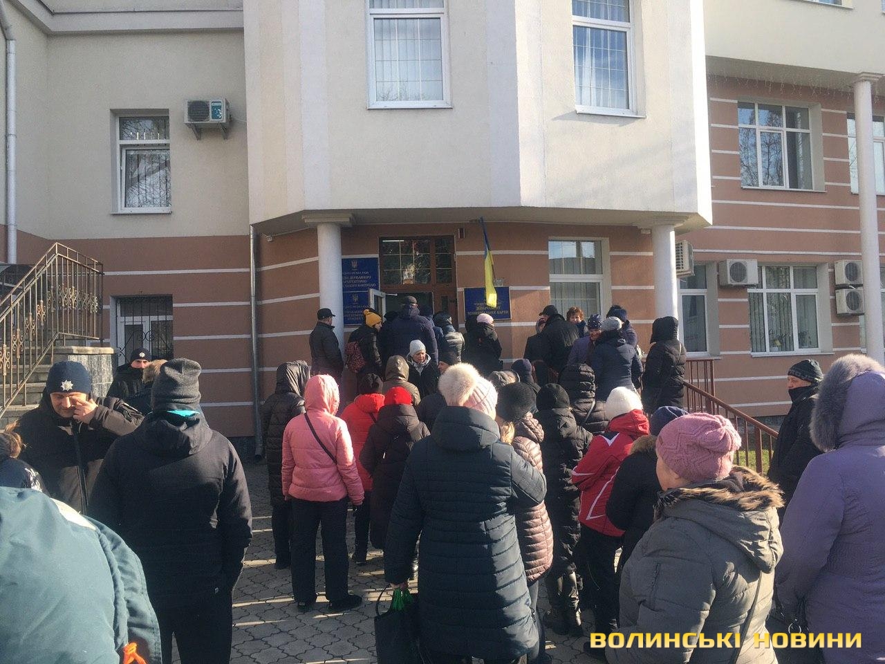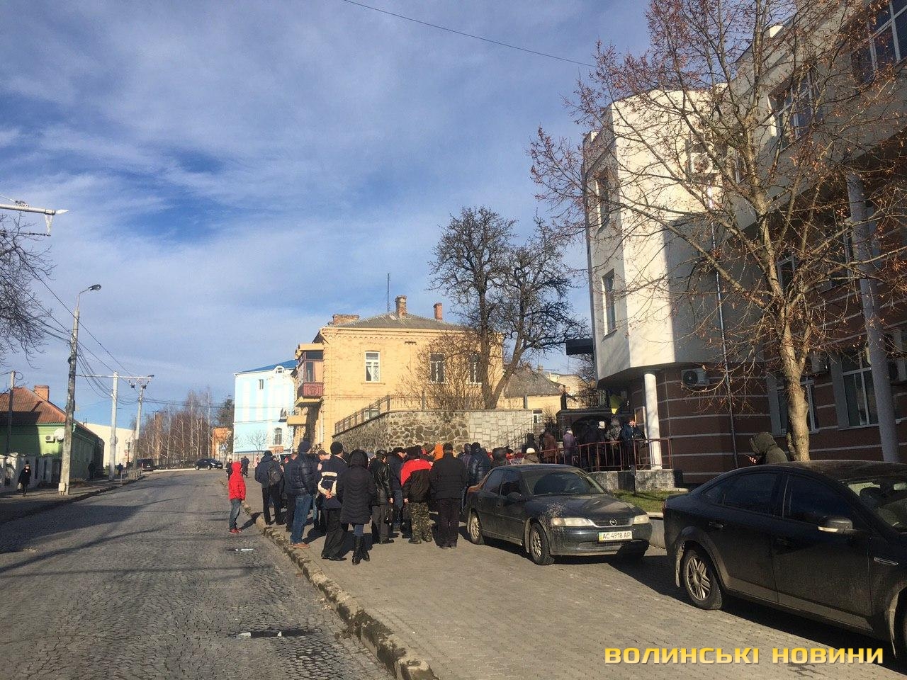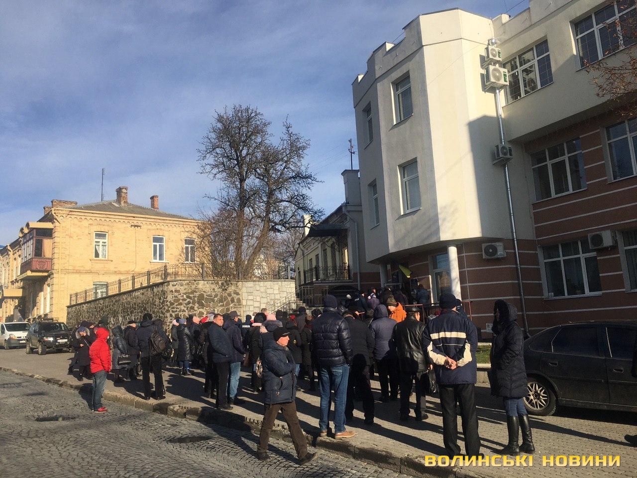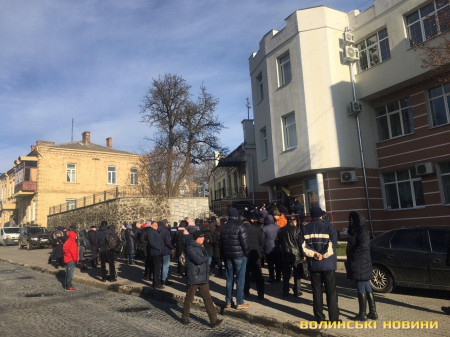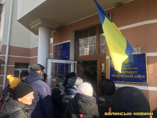 Підприємці Старого ринку оточили вхід в департамент муніципальної варти у Луцьку. Люди вимагають, аби до них вийшла керівниця муніципалів Юлія Сиротинська.