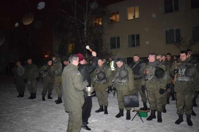 Також благословити бійців прийшов священик Луцького Свято Троїцького Собору Олександр Безкоровайний, який справив спільну молитву за мир на всій Україні і окропив особовий склад святою водою.