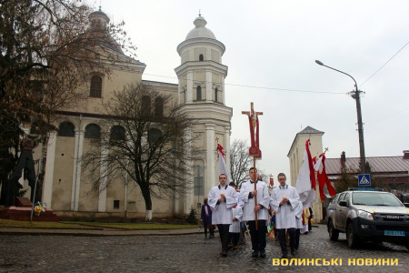 Так, служба розпочалася з ходи, якою віряни пройшлися вулицями Старого міста, та продовжилася вже у костелі.