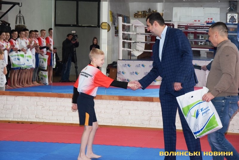 Команда спортсменів відділення кікбоксингу КЗ «ДЮСШ № 2 Луцької міської ради» відзначилась численними перемогами під час нещодавнього чемпіонату України. Привітав призерів перший заступник Луцького міського голови Григорій Недопад, вручивши подарунки від благодійного фонду Ігоря Палиці "Тільки разом", який постійно надає підтримку тренерам та вихованцям клубу.
